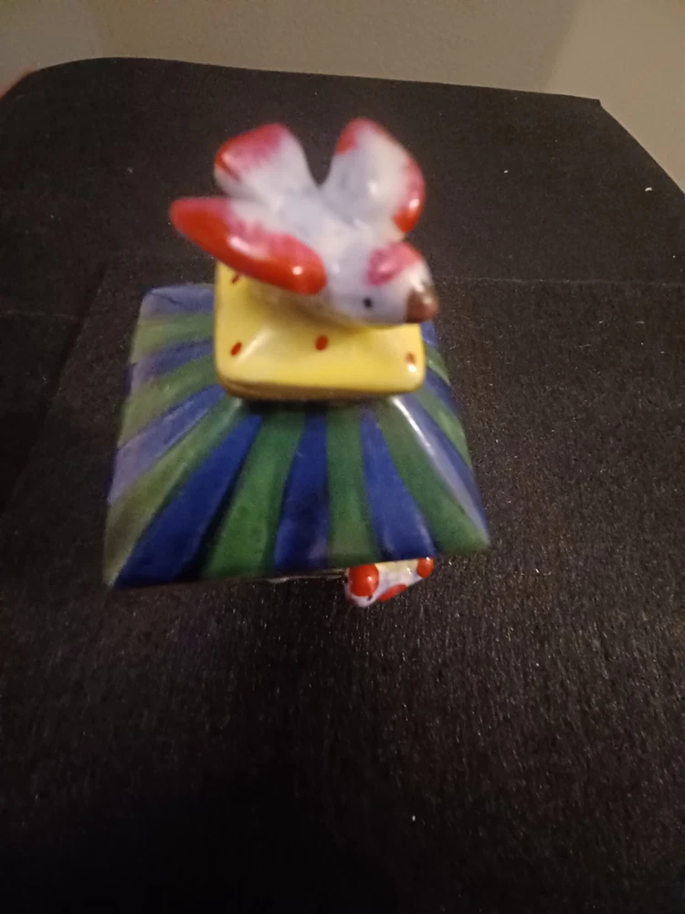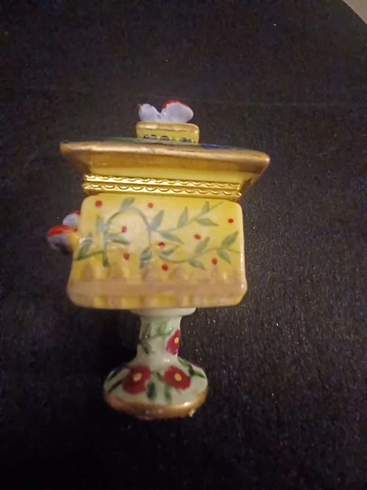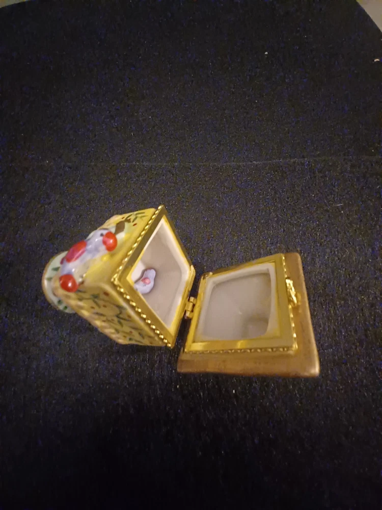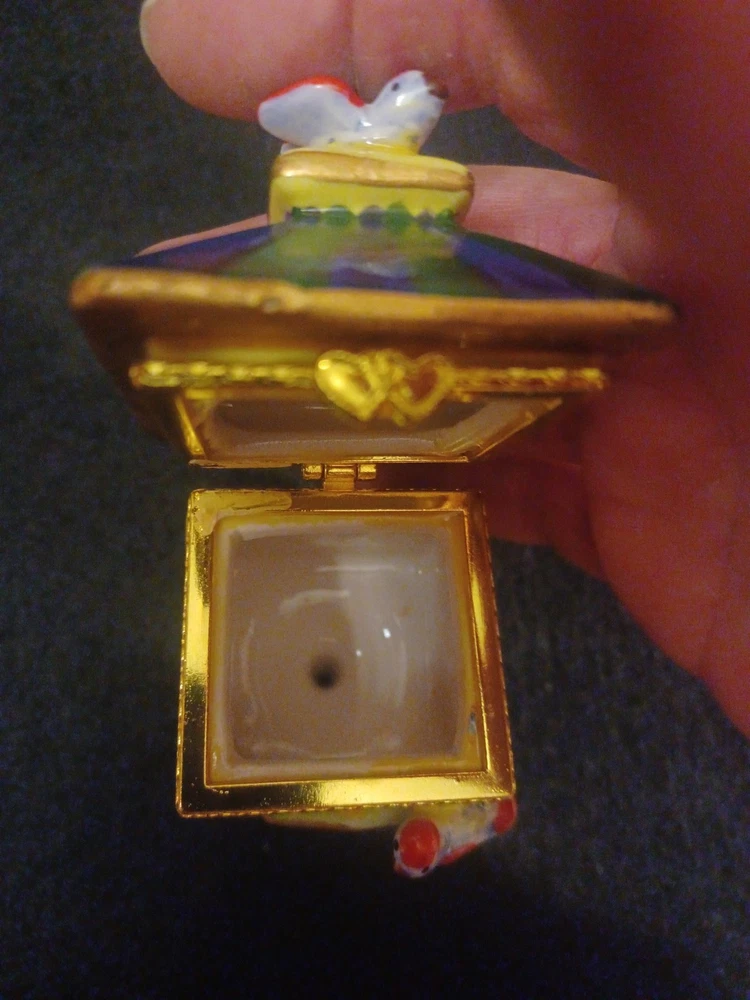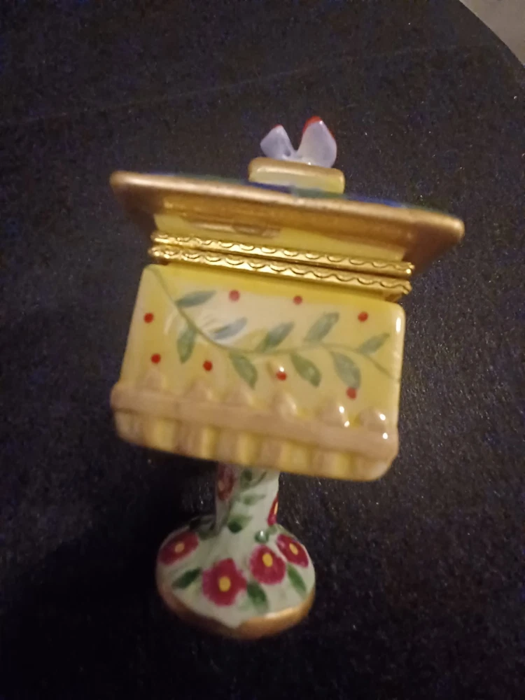 The product is a Bird brand trinket box in a multicolor design, featuring a bird subject. The trinket box resembles a bird house, making it a charming and decorative piece for storing small items.