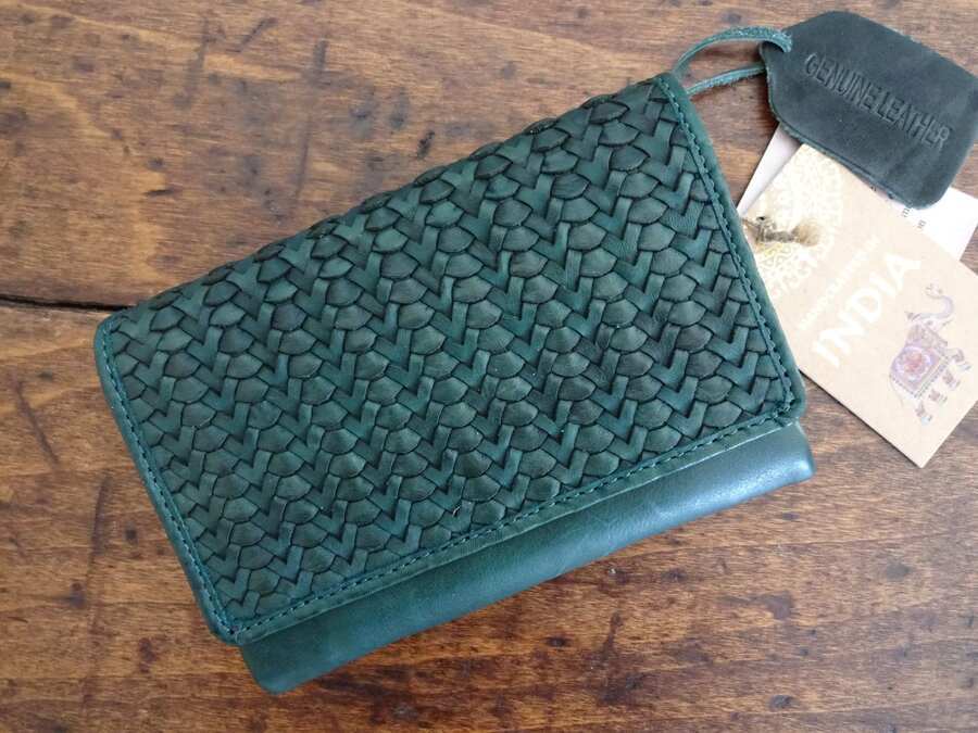 This gorgeous dark green woven leather wallet is a must-have! The soft leather feels luxurious, and the vintage-inspired design adds a unique touch. It’s surprisingly spacious—plenty of slots for cards, cash, and even a zippered coin pouch. The craftsmanship is outstanding, and the snap closure keeps everything secure. Perfect for everyday use or special occasions. Absolutely love it!