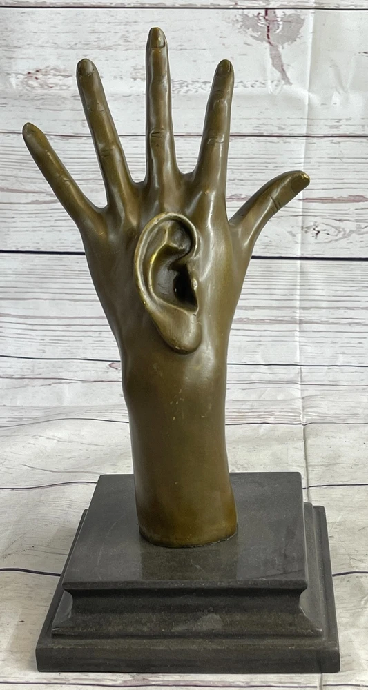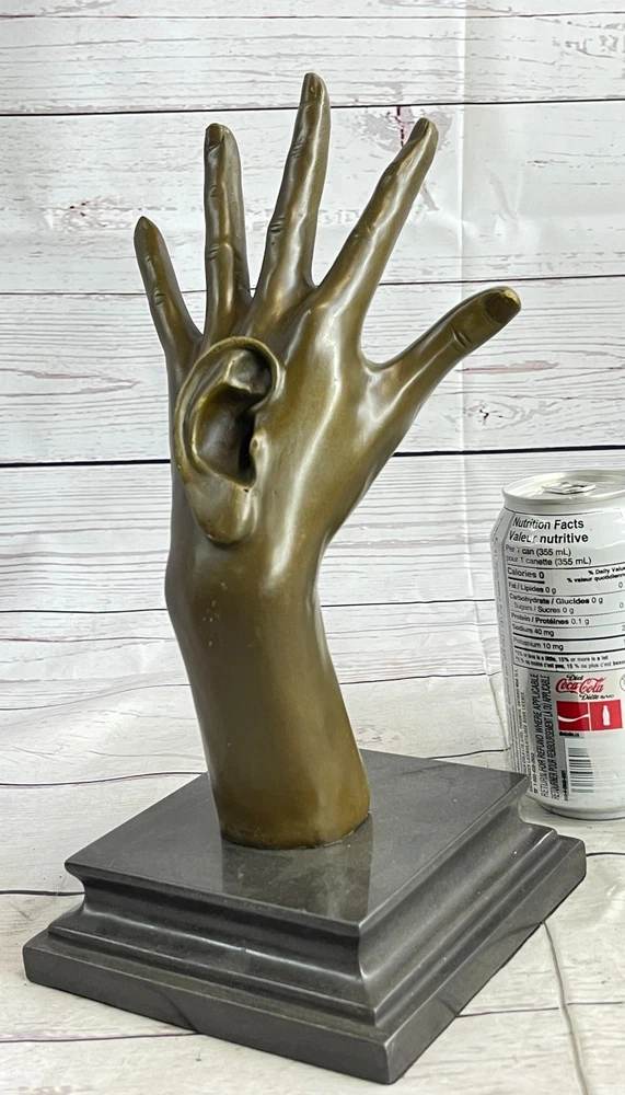 Handcrafted Detailed abstract Modern art Hand with Ear Bronze Sculpture Statue Handcrafted Detailed abstract Modern art Hand with Ear Bronze Sculpture Statue Condition : This sculpture is in perfect condition. Bronze Dimensions with Marble Base: Height 13" x Width 5" Marble Dimensions:5" X 5" Height without base:9" Weight:9 LBS Inventory:28DS3464282 This work of art is fantastic down to the last intricate detail. Every line is crafted to perfection, from the fingers to the fingernails and the subtle hand cuts. What makes this sculpture truly unique is the ear sticking out of the statue's hand, adding an intriguing and unconventional element to the piece. The figurine was cast using the ancient "Old Lost Method" and is stained with a brown patina finish to ensure its preservation. It is 100% handmade and 100% bronze, showcasing the artist's dedication to quality and traditional craftsmanship. Mounted atop a black marble base, this sculpture is a striking and one-of-a-kind addition to any art collection. Its meticulous detailing and unusual design make it a captivating and conversation-starting piece, reflecting both artistic skill and creative vision. Surreal Bronze Sculpture Hand w/ Ear Statue Modern Art Abstract Signed Original 13\" x 5\" DS-346 Video will open in a new window Using the eBay App? Paste link into a browser window: [isdntekvideo] Shipping Terms : Most of our items are shipped via USPS (United States Postal Service) mail or UPS. Most orders are shipped within 24-48 hours of purchase. Please be aware that not all items are available for USPS shipping due to size and weight. We do ship to Hawaii, Alaska, Canada, Puerto Rico, APO/AE, and U.S. Virgin Islands, however, an additional charge may be required. Please contact us before making any purchases in these areas. For Non-USA customers, you may be responsible for all duty, tax, brokerage fees that may be due upon delivery (shipping costs cover freight charges only). We also ship internationally. Please refer to the "Shipping and Handling" chart for the rates for each area. Payment : We accept just about any form of payment. PayPal, Master Card, Visa or American Express credit cards. Money orders, cashiers checks, and even personal or business checks. For governmental institutions, we will also accept a purchase order. Please understand that for personal or business checks we have to wait for the check to clear (usually 7 days) before shipping. Condition : New Detailed Hand Crafted Hot Cast Bronze Satisfaction Guaranteed. This is Stock Photo, Slight Color Variation!! Listing and template services provided by inkFrog