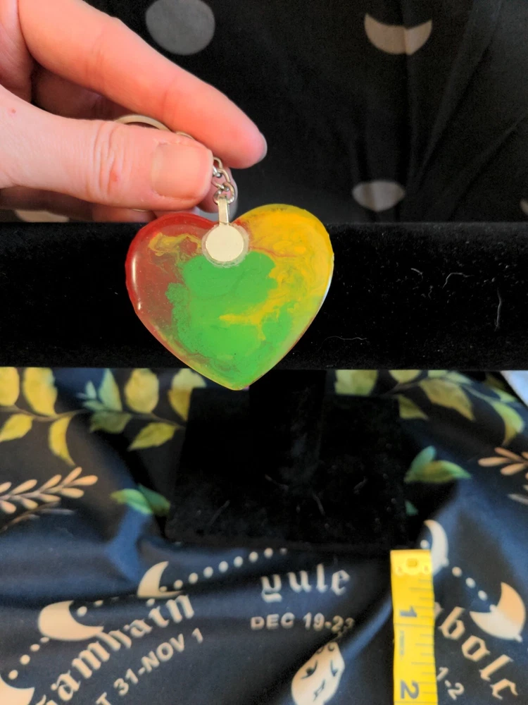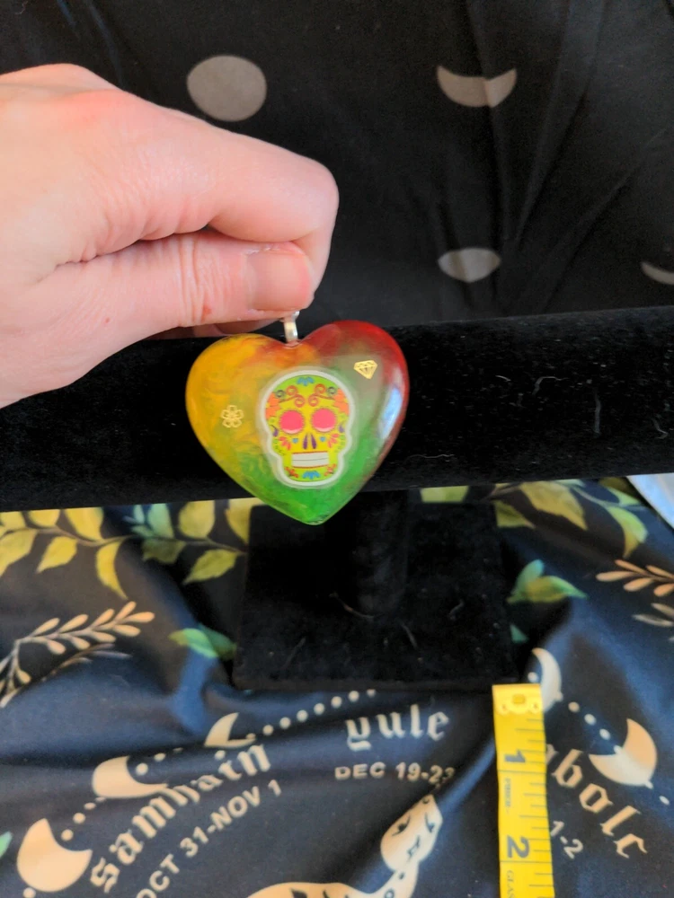 This handmade keychain is a unique and colorful addition to your accessory collection. The skull character is inspired by the Day of the Dead theme and is made of resin material. Measuring 4 inches in length and 2 inches in width, it is a perfect size for your keys or to clip onto your bag. The Tye-dye multicolor pattern adds a fun touch to the keychain, making it a great accessory for Halloween or any day. It is a brand new item without tags and is perfect for women who love to add a bit of personality to their style.