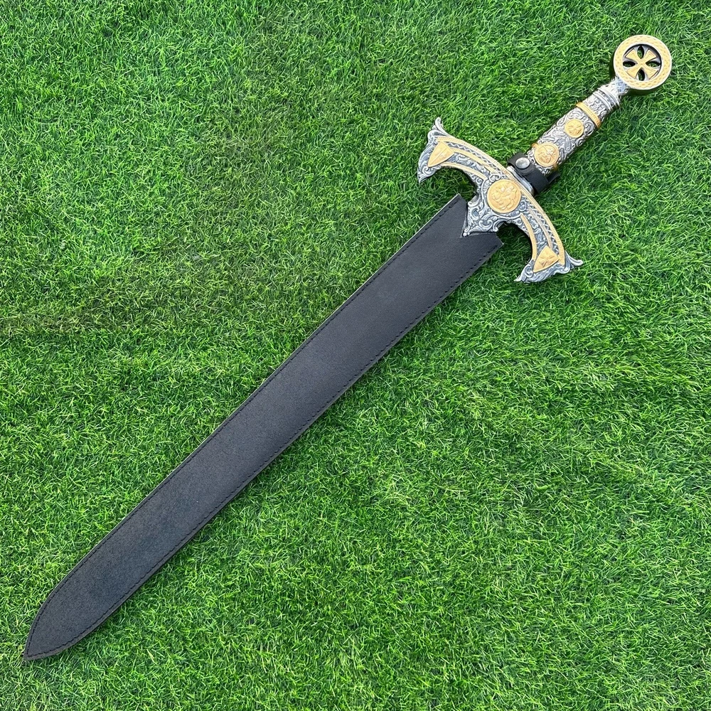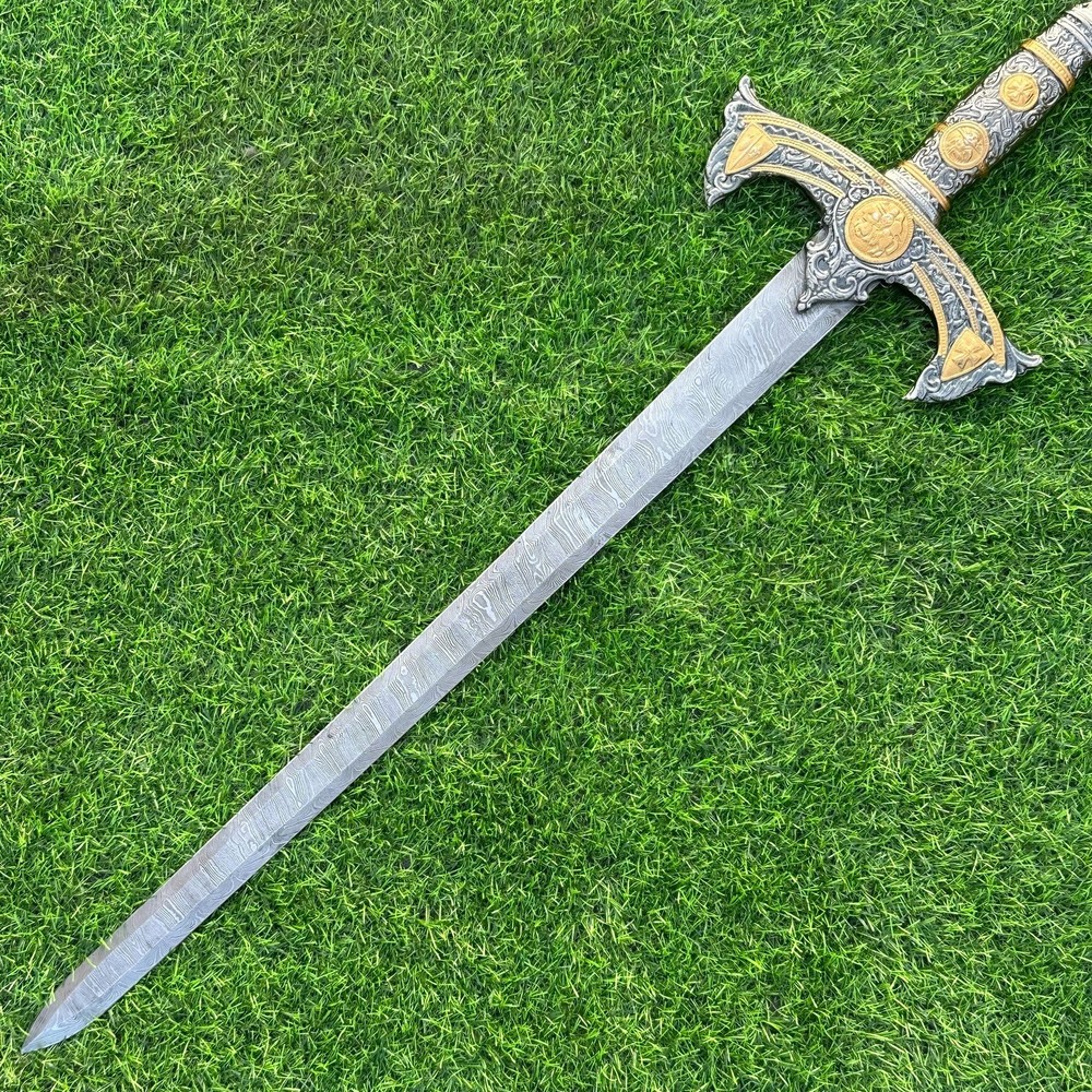EXCLUSIVE HANDCRAFTED Damascus Steel Blade: A Legendary Sword for the Modern Warrior, Medieval Sword Swords Battle Ready, Hand Forged Sword, Damascus Sword, Long Sword, Viking Sword, Sword, Wedding Gift, With sheath Product Details: Overall Length: Approximately 35.0"inches (Approx.) Blade Material: Genuine Damascus Steel Blade Hardness: 54-58 HRC Handle Material: Pewter Handle Size Verification: To help you easily determine the size, we've included images with a scale for precise dimension reference. Thank you for your understanding. We appreciate your consideration. Included Accessories: Sheath -excellent husband wife gift -Wedding gift -Father's Day gift -Mother's Day gift -Birthday Gift -Groomsmen gift -Christmas gift -Luxury Gifts For Men -Anniversary gift for husband -Thanksgiving Gift For International Customers: We kindly advise our international customers to familiarize themselves with their country's regulations prior to making a purchase. If customs in your region request customs duties, please be prepared to cover these costs. Regrettably, we cannot assume responsibility, nor issue refunds in such cases. Our Damascus Steel Creation Process: At our workshop, we take immense pride in crafting authentic Damascus steel knives that surpass mere acid etching. Here's an overview of our Damascus steel-making process: 1. Material Selection: We meticulously combine 1095HC and 15N20 nickel carbon steel for our blades. 2. Layering: The chosen steels undergo repeated heating and folding to achieve a remarkable 384 layers. 3. Acid Burn: Following the layering process, the blade is treated with acid, revealing the brilliant nickel shine and a dark gray hue in the high carbon steel, thereby showcasing the stunning Damascus patterns. 4. Blade Finishing: Concurrently, we expertly sharpen the blade's edge, transforming the acid-treated edge into a striking satin finish. Our unwavering commitment to preserving the authenticity and craftsmanship of Damascus steel ensures that each knife in our collection showcases intricate layers and delivers exceptional performance. AGE LIMITATION: Please note that we exclusively sell knives to individuals who are 18 years of age or older. Additional Details: Leather Sheath (if pictured): Rest assured, this item comes with a superior-quality, sheath. Crafted with meticulous hand-tooling and stitching, it exemplifies fine craftsmanship and is designed for exceptional durability. The added stitching ensures it withstands years of demanding use, providing reliable protection for your knife throughout its lifetime. Care and Maintenance: When necessary, use a Diamond Wet Stone or a superior sharpening tool to maintain a 20-degree blade edge. After use, clean the item with soap and water, ensure thorough drying, coat it with gun oil, and store it separately from the sheath. Leather absorbs moisture from the air and can lead to blade rust if stored improperly. Customer Feedback: Your satisfaction and feedback are of utmost importance to us. We genuinely appreciate your positive reviews! When assessing shipping time, please consider international transit. Your recognition bolsters our confidence to enhance our services. If you encounter any issues with your order or product dissatisfaction, please reach out to us first. We are committed to resolving any concerns to your satisfaction and kindly request you not to leave neutral or negative feedback. Payments & Returns: All accepted eBay payment methods are available for this purchase. Our return policy typically extends to 14 days. Shipping and Handling: We offer free shipping on all our products (In the USA) Tracking Info: The buyer will receive the tracking number via email (if available). You can also track the shipment in the "Order Details" section on eBay. USPS UPS DHL updates tracking information nightly (if available). Contact: Feel free to contact us anytime via eBay messages. We are dedicated to responding to your inquiries within 24 hours and providing the best possible assistance.