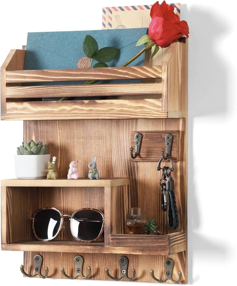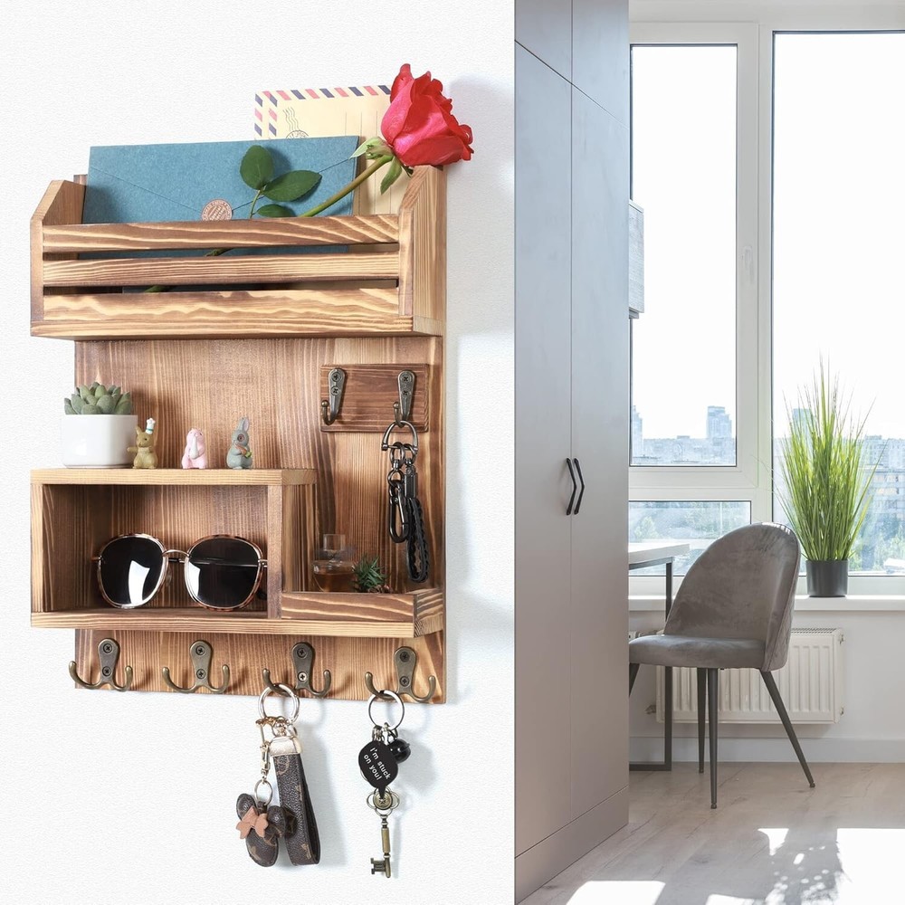 Just got this organizer and it’s a game-changer! The premium pine wood adds rustic charm while the bronze hooks stay sturdy even with heavy bags. Love how it keeps keys and mail neatly in place—perfect for entryway organization. Handcrafted details make it a standout piece!