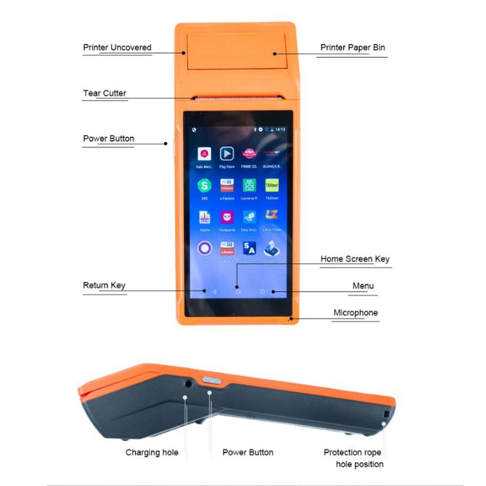 Features: Intelligent payment terminal device, performs well as receipt printer and camera, supports 3G, WiFi, BT4.0, 8GB NAND Flash. Compact size and wireless design, easy to carry around and convenient to use; built-in 5000mAh rechargeable battery supports enduring working time. Built-in pos receipt printer uses 58*35mm printing paper, no need of print cartridges or ribbons for low operating cost, low noise and high speed while printing. This PDA printer comes with Android 8.1 OS, smooth and stable operation, great for Android-based apps which need the function of printing. User-friendly -- smart POS terminal is very efficient in processing sales and suits for warehouse management and small business like cafeteria, boutique, bookstore, etc. Specifications: Model: Q8/Q2P Color: Orange Configuration: 3G Communication CPU: Quad-Core 1.3GHz MT6580V/WA RAM: 1GB NAND Flash: 8GB Operating System: Android 8.1 Primary Screen: 5.5 Inch, 1280*720 IPS Screen Capacitive Touchscreen Communication Method: 3G (fits all kinds of networks) Back Camera: 800W Downward Compatible Battery: 7.4V, 5000mAh Charging Interface: DC Charge, 12V 1.5A Earphone Interface: 3.5mm Standard Earphones OTG: Support USB Interface: Micro USB2.0 * 1 Audio System: Built-in Speaker, Buzzer, Microphone WiFi: 802.11b/g/n GSM: GSM850/900/1800/1900 WCDMA: B1 BT: BT4.0 Printing: Therminal Pinter, Paper Scroll 58*35 (not included) Printer Size: 21.5 * 8.6 * 5.3cm / 8.46 * 3.39 * 2.1in Printer Weight: 462g / 16.3oz Package Size: 24.5 * 13.3 * 9cm / 9.65 * 5.24 * 3.54in Package Weight: 850g / 29.98oz Package List: 1 * PDA Printer 1 * Power Cord(US/EU Plug) 1 * Power Adapter 1 * User Manual (English&Chinese)