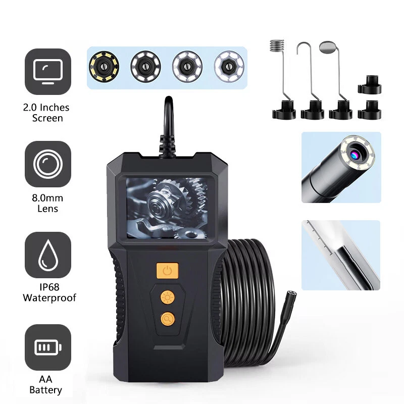 Handheld Portable Video Inspection Snake Camera Endoscope Bore scope IPS Screen Features : 【 2.0 Inch IPS Color Screen 】 This handheld endoscope camera with 8mm camera probe can get to the tightest and hardest-to-reach areas without any hassle. The 1080P HD endoscope gives you clear images on the 2.0 Inch color display screen. 【 Ergonomic Handheld Endoscope 】 The ergonomic handheld design allows you to operate the endoscope camera with one hand while working.The non-slip frosted body makes the endoscope camera comfortable to hold, lightweight and convenient to use. 【 8 Adjustable LEDs for Enhanced Visibility 】The handheld borescope allows you to adjust the brightnessaccording to the environment. Whether you're working in a dimly lit area or a completely dark space, you can capture clear and well-illuminated images with ease. 【 Semi-Rigid Camera Cable & Waterproof Probe 】: The semi-rigid inspection camera can bend easily and hold its shape. It unrolls and rolls up easily, which provides a good mix of flexibilityand rigidity. The borescope camera is designed to withstand various environments. While the waterproof feature is applicable to the camera lens only, it ensures reliable performance even in wet or submerged conditions, making it ideal for plumbing, automotive, and other water-related inspections. 【 Powered by 4 AA Batteries 】 This portable endoscope camera uses 4 AA batteries instead of built-in rechargeable lithium batteries, which is versatile and more convenient to replace without additional charging equipment. There is no need to worry about product obsolescence due to the aging of the built-in batteries, and it can be used for a longer period of time. 【 Wide Applications 】 This borescope camera cable is widely used in fields such as plumbing, HVAC duct inspection, chimney inspection,machinery inspection, automotive repair, electrical diagnostics, wall structure inspection. Specifications : Type : Handheld Endoscope Camera with Light Monitor : 2.0 inch IPS Color Screen Camera Diameter : 8mm Resolution : 1280*1080 Horizontal Viewing Angle : 170° Focal Distance : 4cm - 10cm Battery Required : 4 x AA Batteries ( Not Included ) Light Source : 8 LED Lights (adjustable) Package Includes : 1 x Handheld Endoscope Camera 1 x User Manual 5 x Accessories( Hook, Magnet, Mirror and Two Spare Caps) Shipping Item will be sent out by USPS or other carrier accrodingly. No local pickup. We reserve the right to change the shipping method without notifying customers. We have multi-warehouses in NY/CA/KY/TX,so your item may not be sent from the warehouse which stated in the item location. Payment We accept online payments managed by eBay. Contact Please send us a eBay message if there is any problem with your order before leaving us a negative feedback/low DSR rating/opening a return case, we will reply within 24 hours.
