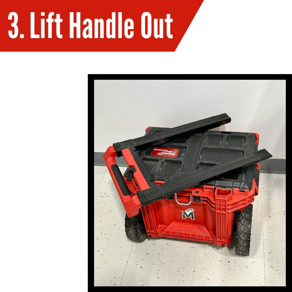 HANDLE RELEASE KIT FOR PACKOUT: Easily remove the handle from your Milwaukee Packout Rolling Toolbox 20% LARGER PIN HEAD: Our Handle Release Pins Heads are 20% than standard pins. Easier to use! More Grip! Use with Gloves! Quickly remove the handles off of your Rolling Toolbox using our high quality 100% stainless steel Handle Removal Pins Our Handle Release Kit for the Milwaukee Packout can be installed in minutes using the supplied tools! Our Handle Pin Mod Kit for Milwaukee Packout comes with 2 x Handle Pins, 1 x 5mm Drill Bit, and 1 x Threaded Bolt to Tap Holes! Increase the versatility of your Storage System by adding our Handle Removal Kit. Transport your Rolling Toolbox under truck bed covers, fit in smaller spaces, make your life easier! Installation instructions are included in the kit to help you install our Handle Quick Release Pins! Product Description Remove your Packout Handle in 3 Easy Steps!