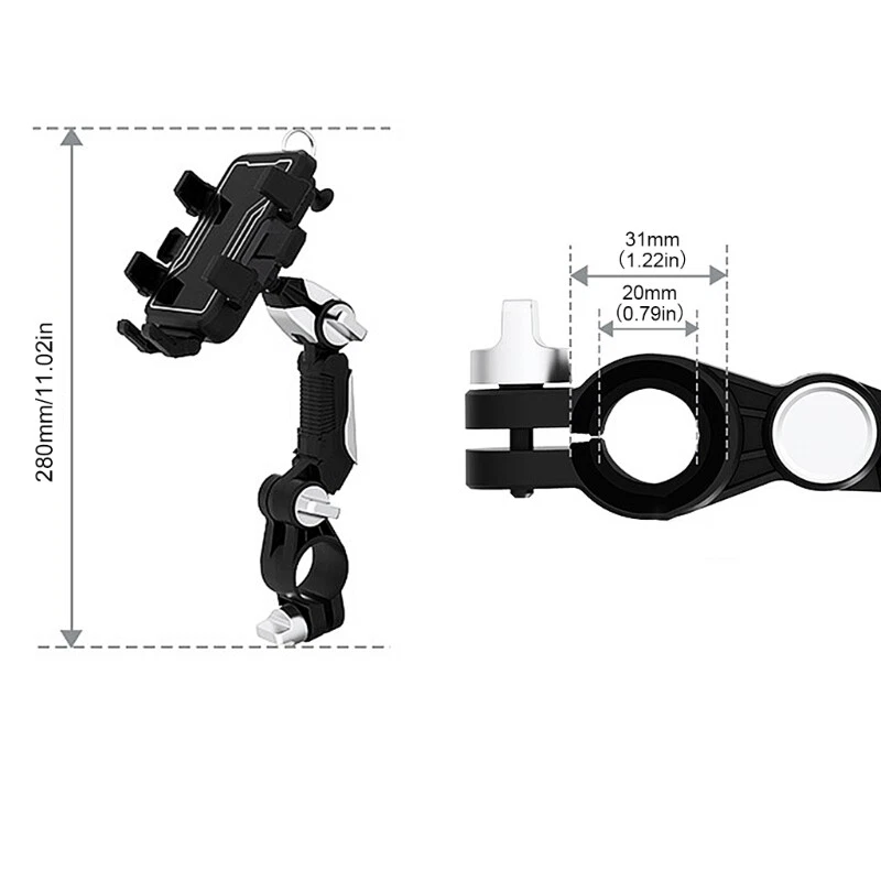 Handlebar Clip Motorcycle Phone Mount for 15 14 13 Scooter Phone Holder Features: The Motorcycle Phone Holder for your motorcycle. Secure holds smartphones, fitting various handlebars. Crafted from materials, this phone holder ensures durability and stability during ride. Its allows riders to find the Suitable for all types of riders, this phone holder caters to different needs. Whether you're commuting, exploring, it provides convenience and Mount your phone on the handlebar and easily access features for convenient journey. Stay track and reach your destination. a ride with the Motorcycle Phone Holder. Enjoy convenience and make most of your biking adventure. Specifications: Component: ABS, Aluminum Clamping 66-100mm Fit Tube Diameter: 20-31mm Box Size: About. 95x85x141mm/3.74x3.35x5.55in Package Includes: 1x Handlebar Phone Stand note: Please allow 1-2cm errors due to manual measurement. Due to difference between different monitors, the picture may not reflect the item actual color.