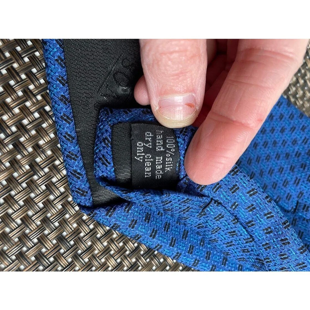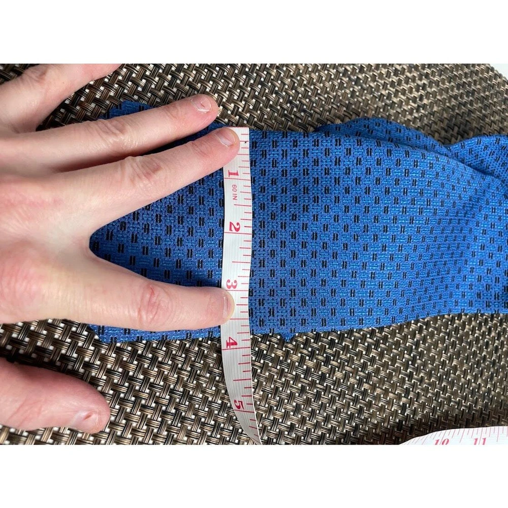 This silk tie is a stunning addition to any formal outfit! The cobalt blue with black pattern adds a sophisticated touch, and the 4" width gives it a modern, polished look. The craftsmanship is excellent—soft, luxurious silk that ties beautifully. Perfect condition, no flaws. Highly recommend for a sharp, stylish finish!