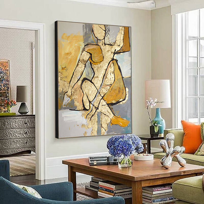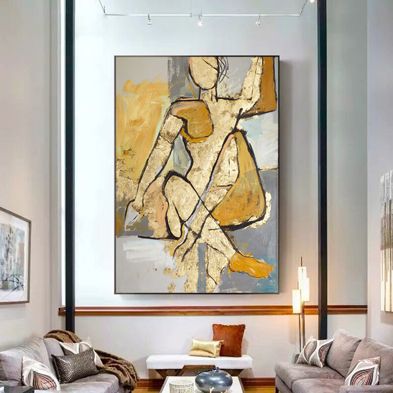 Handmade Abstract Golden Figure Oil Painting Modern Canvas Wall Art Decor