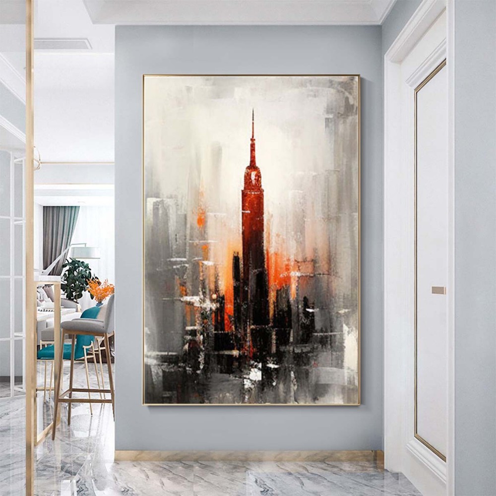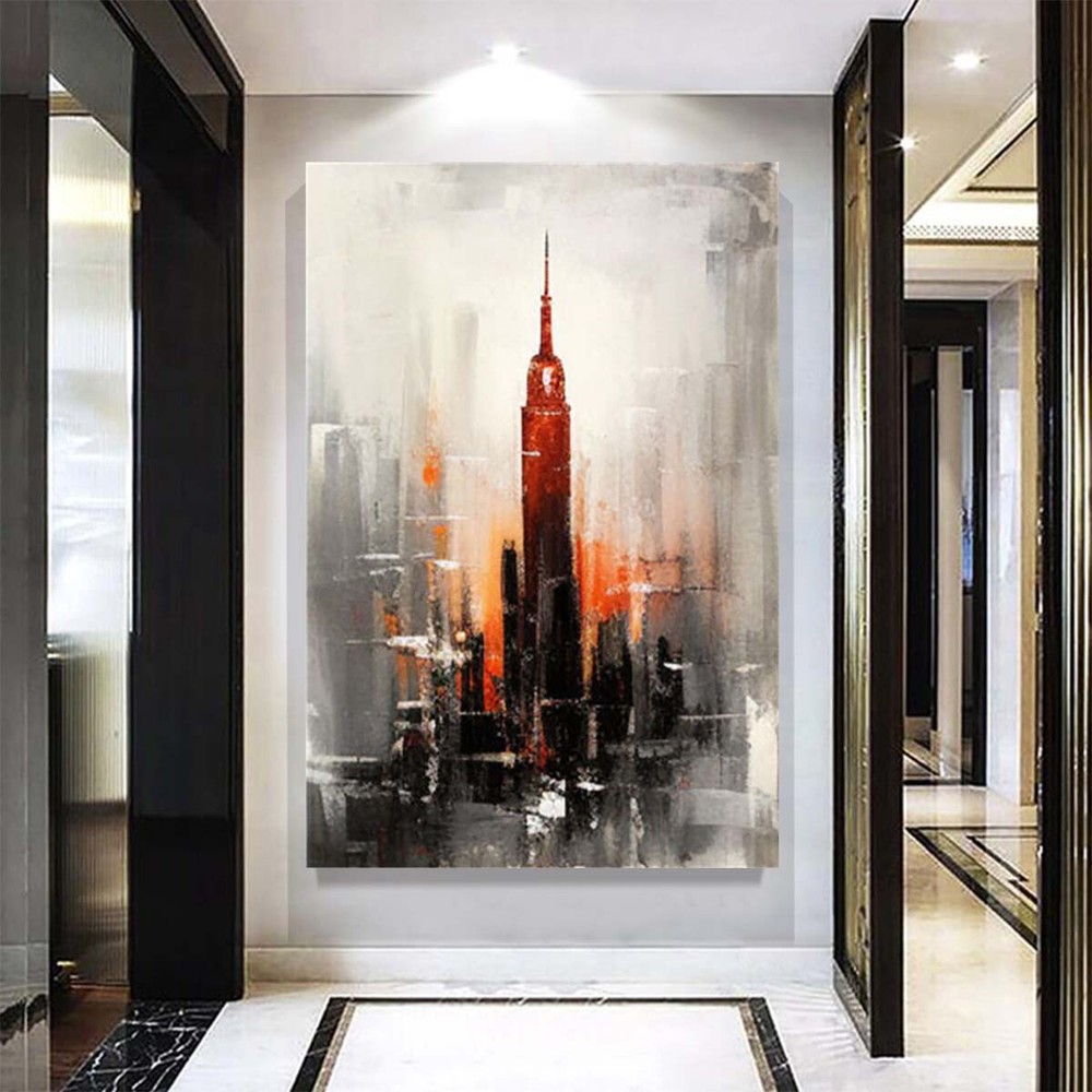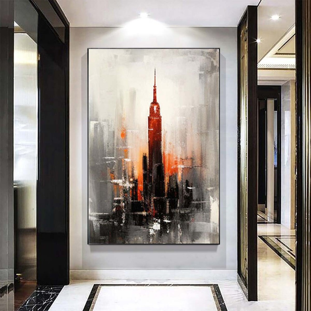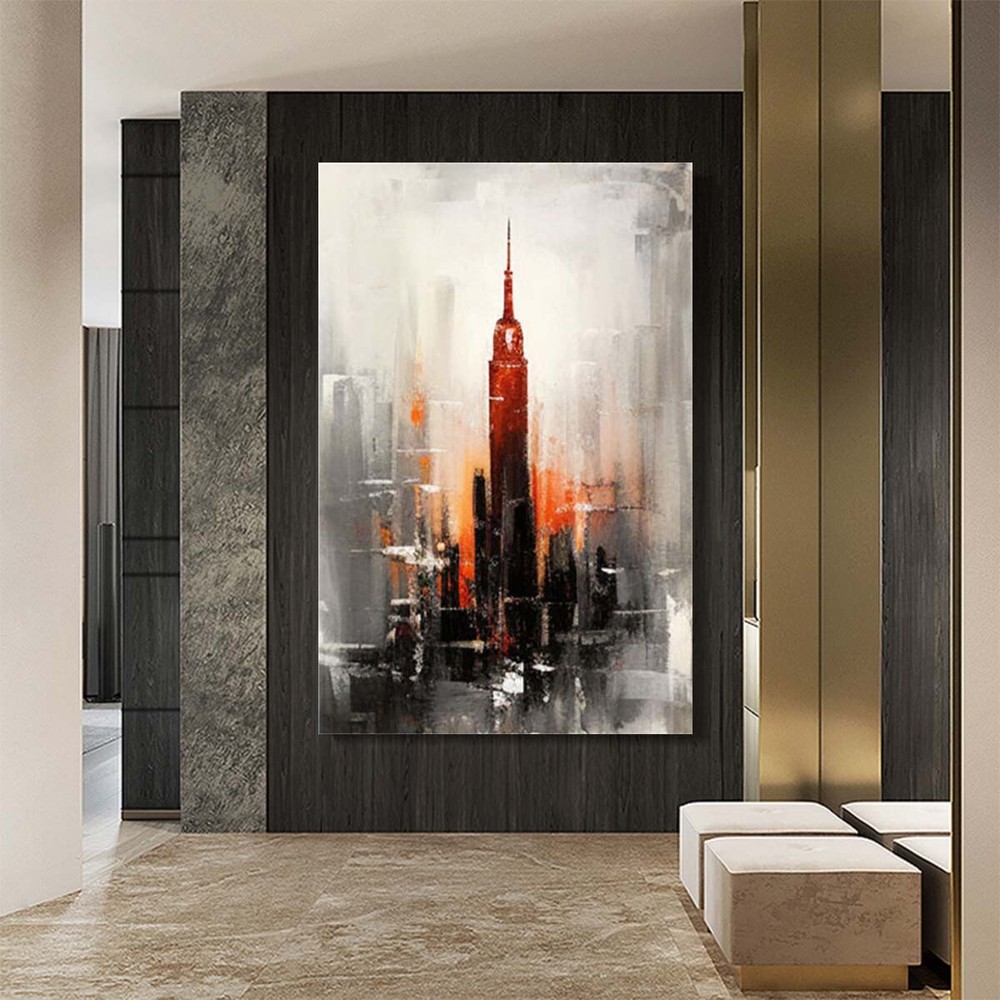 Handmade Abstract Red Room Empire State Building Oil Painting on Canvas