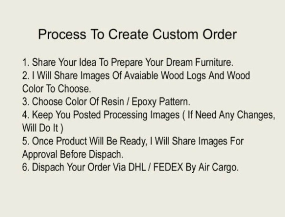 Our epoxy tables are custom-made, and we strive to use the same type of wood as depicted in our advertising pictures. However, it is not always possible to find an exact match, which may result in slight variations in the epoxy color and wood grain pattern. It's important to keep in mind that the table you receive may not be an exact replica of the advertising picture. We ensure that our clients are informed of every step of the process, from the selection of the wood to the final finish of the table. We keep our clients up-to-date throughout the process to ensure transparency and avoid any misunderstandings. Additionally, our price includes air delivery right to your doorstep via DHL/Fedex/UPS and insurance protection. Please note that you may be responsible for paying any applicable tax and duty on delivery. If you have any concerns or doubts, we highly recommend addressing them before making a purchase. Clearing any doubts beforehand will help avoid any issues and ensure a smooth buying process. It's important to note that any accessories depicted in the advertising images, such as knives, chairs, or lighting, are not included with the product and are only used for photography purposes. Additionally, please keep in mind that the price of the product does not include any type of legs. If you would like legs included, we can provide them for an additional cost. We recommend addressing any questions or concerns before making a purchase to avoid any misunderstandings.