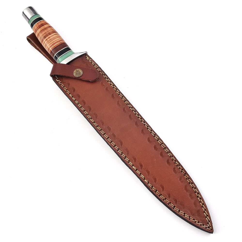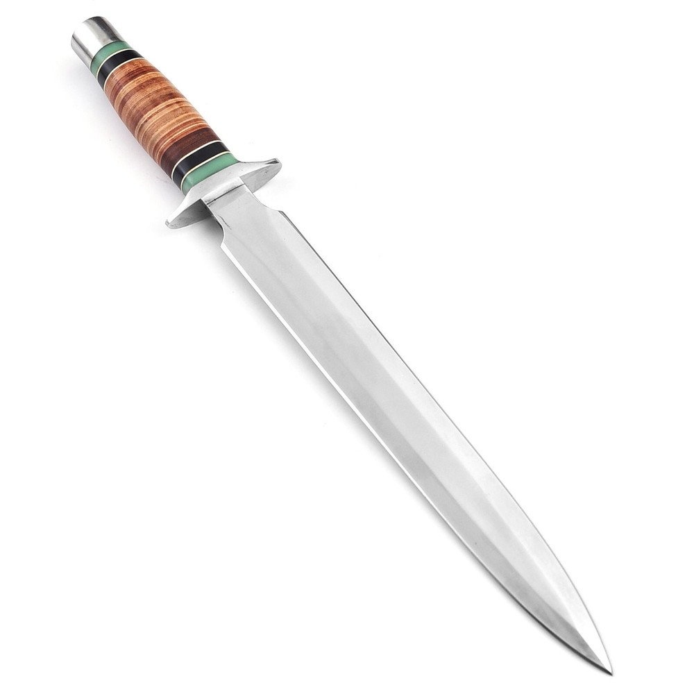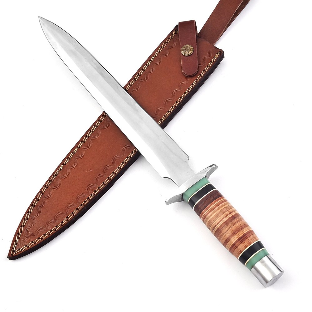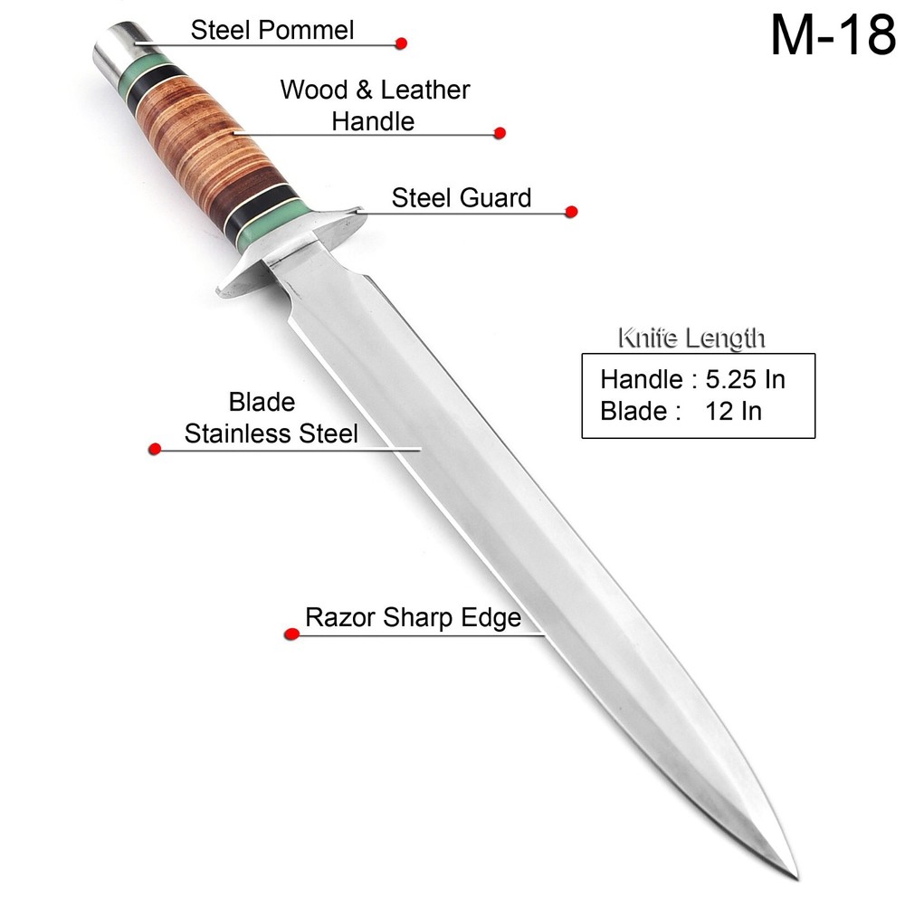 Item Description: Custom Handmade D2 Tool Steel Hunting Dagger Bowie Knife With Leather Sheath Size and Measurements: Overall Length: 17 Inches: Blade Length: 12 Inches: Handle Length: 05 Inches: Blade Material: D2 Tool Steel Handle Material: Leather Leather Sheath: Yes Top Class Quality Build: The Knife in the photo is the exact one as you will Receive. Comfortable Handle Grip and comes with Leather Sheath perfect for Hunting, Fishing, Hiking, Camping, Boating, Backpacking or any other outdoor Adventure. It is also a Key item to add to your Survival Tactical Gear. We have ability to make Knives as much as you want. All our Knives are 100% Handmade we do not use any CNC machining to make our knives. You will not find a better Handmade knife quality anywhere for this price Care Instruction Keep the knife dry and clean after each usage. Our Tools are sharp so open and use them carefully. W e are not responsible for any injury associated with the use of our tool. FEEDBACK: Our eBay customer satisfaction and eBay reputation are extremely important to us. We truly appreciate your positive feedback. Your recognition will make us more confident to develop business and serve you better. If you have any problem please contact us before leaving any negative or neutral feedback. We will do our best to resolve any problem. Customer satisfaction is our first priority. SUPPORT: We promise to answer all emails within 1 business day.
