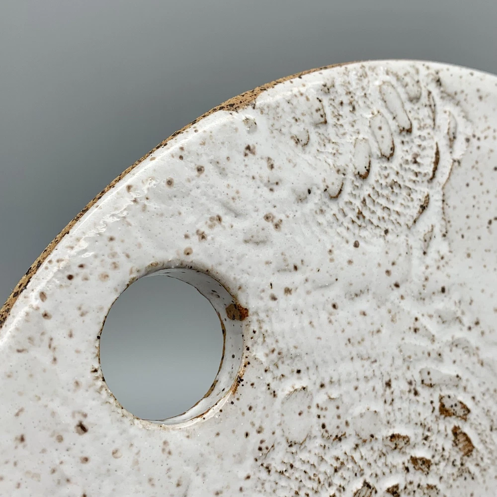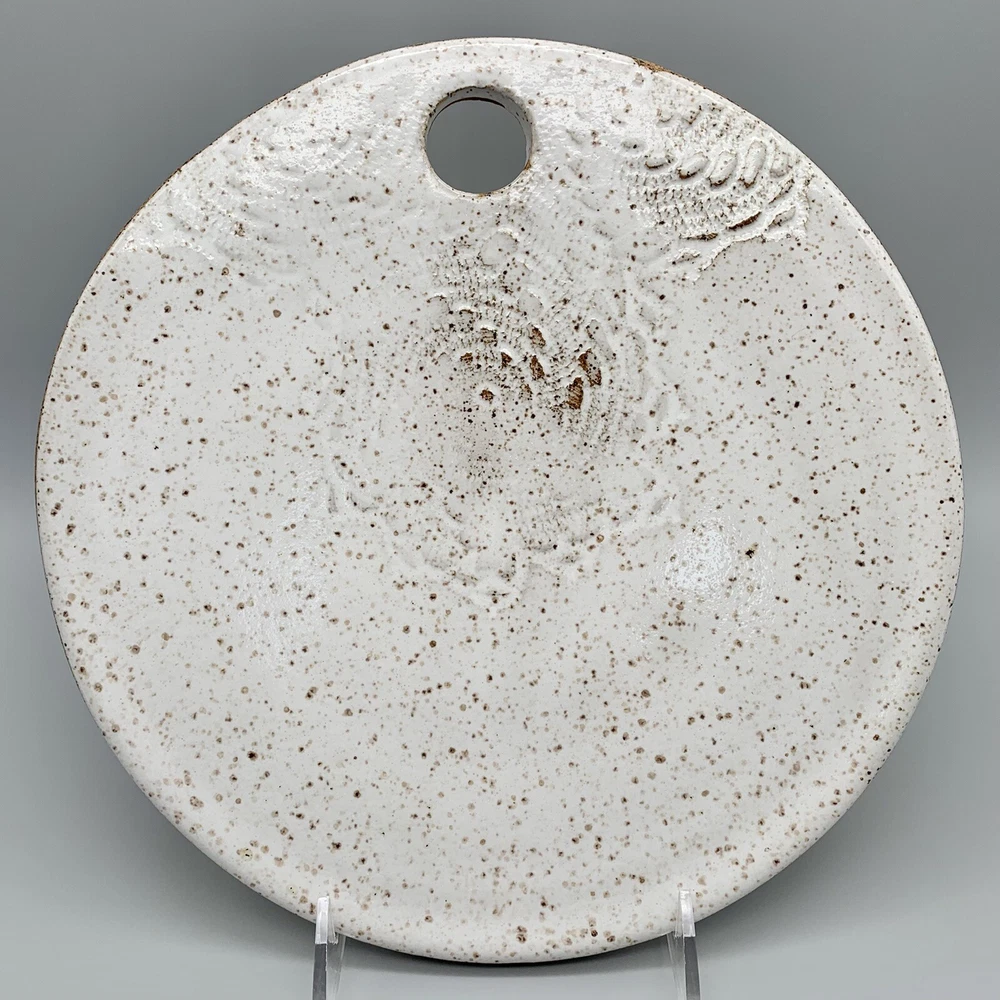 For your consideration is this beautiful and functional handmade art pottery embossed wall hanging cheese or charcuterie board! Item Dimensions: 9.75" diameter This piece is in excellent condition with no chips or cracks, but please see the photos as minor glaze skipping is noted. All packages ship USPS with tracking included. If you would like to request alternate shipping, please contact us prior to purchase. ~ Hello there, At Devsea Collectibles, our mission is to bring unique vintage finds to the everyday home, regardless of style or budget. You can browse our full selection of hand-picked vintage and antique merchandise here: https://www.ebay.com/str/devseacollectibles Because of the one-of-a-kind vintage nature of our items, all sales are final, and returns cannot be accepted for items that do not fit your needs. However, we understand things don't always arrive as expected, and we're happy to assist with any issues that may arise. We currently mail orders on Monday, Wednesday, and Friday mornings. Please be aware that packages ordered after 5pm on Thursday may not ship until Monday. We do our best to fulfill orders in a timely manner and appreciate your patience. Best wishes to you all, Dev