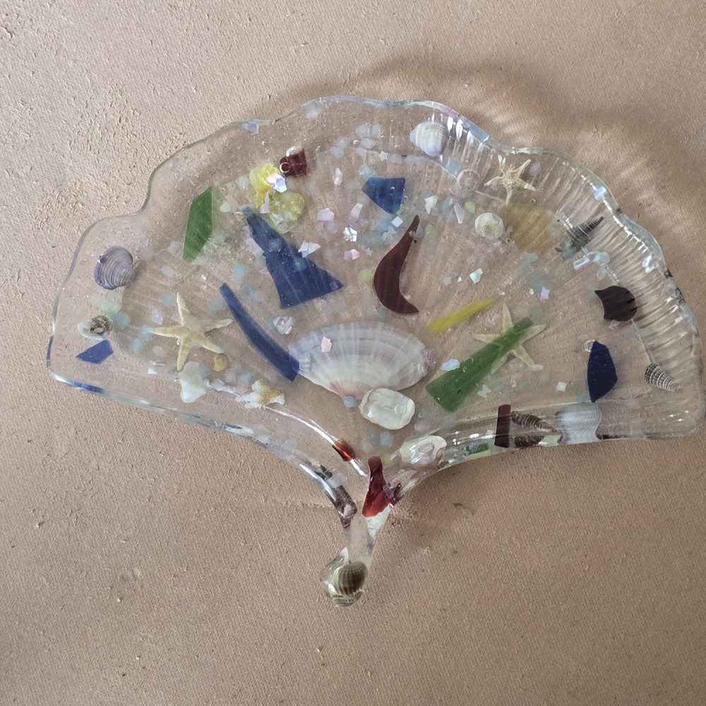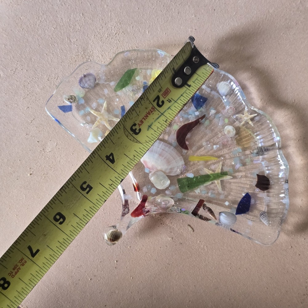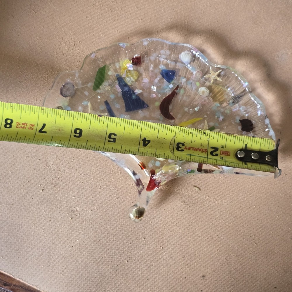This Handmade Custom Beach Glass and Shells Tray is a unique and decorative piece for your home. The tray features a pattern of shells, a multicolor finish, and is made with epoxy and glass materials. It is one tiered and has one compartment, making it ideal as a vanity tray or for serving drinks or snacks. The original design and handmade craftsmanship add a touch of personalization and charm to this functional and stylish piece. I can also customize these, and put anything you want inside the resin from pictures to wedding rings or whatever is important to you. I can also add color. My contact info for custom orders is inside my profile pic. Have a blessed day!