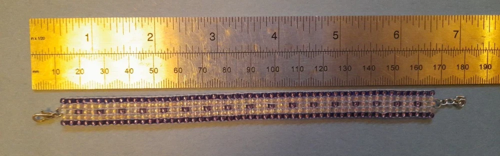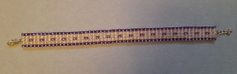 Beautiful Handmade Unique Seed Bead Bracelet Lobster Claw and chain fastening Dash Pattern Purple and Silver Overall length 180mm Please feel free to ask a question or make an offer