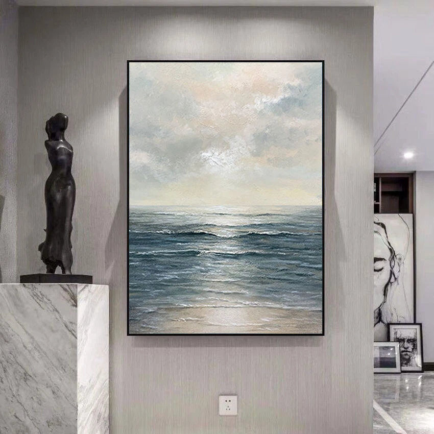 Handmade Canvas Oil Painting Interior Decoration Salon Sea Dawn Modern Art