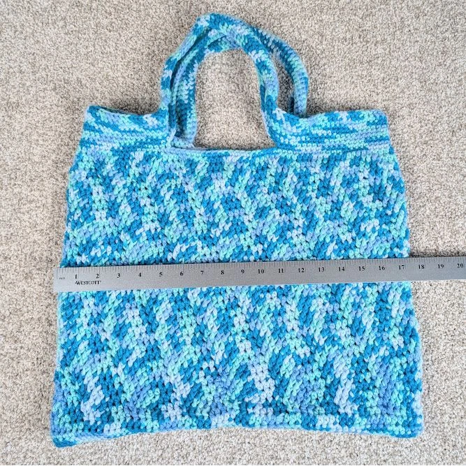 Handmade Crochet Tote Bag Blue Wave Pattern Beach Market Bag