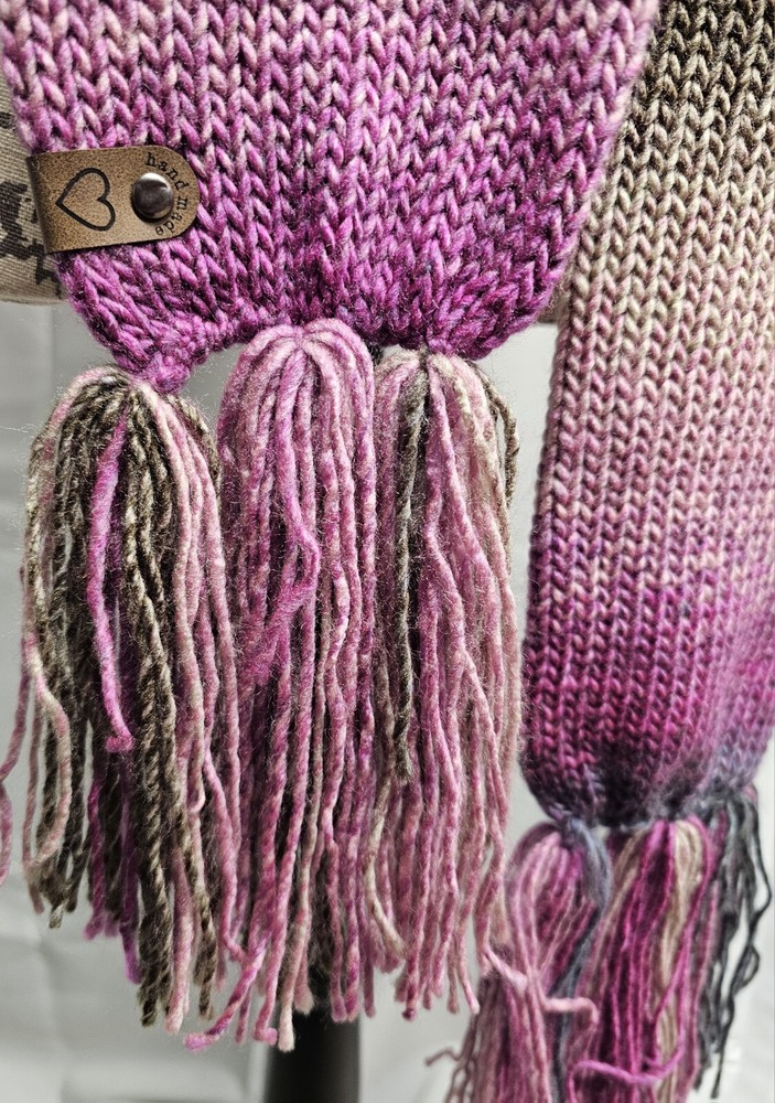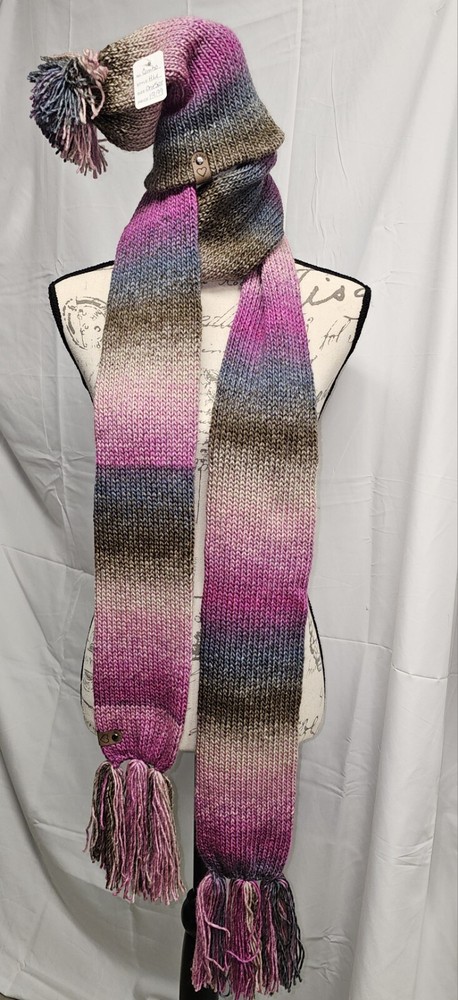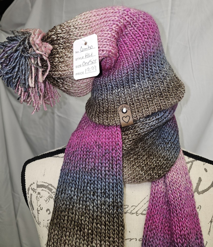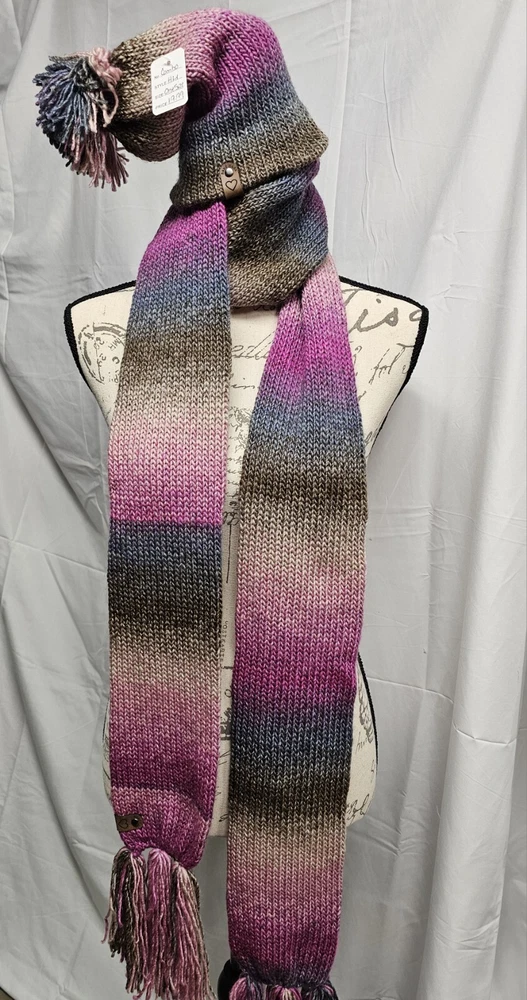 Handmade Crocheted Multicolor Adult Winter Scarf and Hat Set