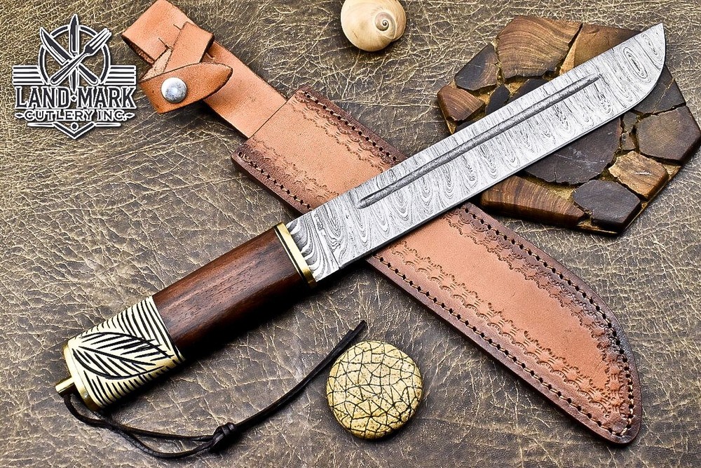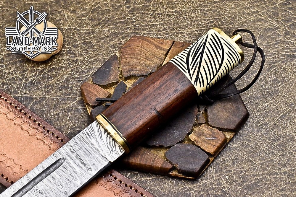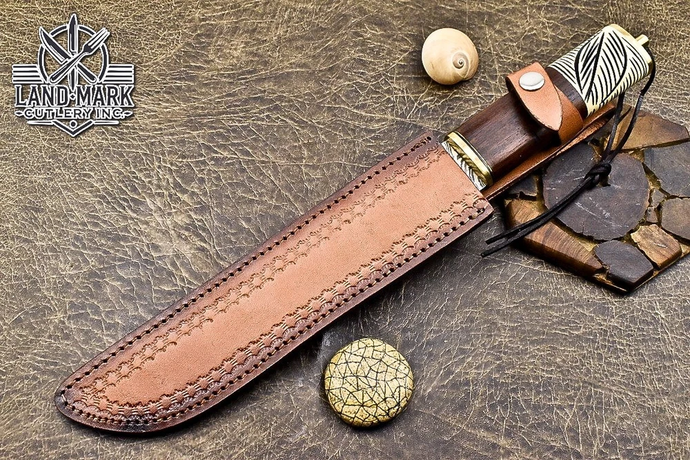 Custom Hand Made DAMASCUS STEEL HUNTING BOWIE KNIFE WITH ROSE WOOD & BONE CLIP HANDLE We offer a shipping discount for More then one purchased . And discount will be apply on combine invoice, Discount will not apply on separate payment. ITEM DETAILS OVER ALL LENGTH 14.0 inches long (Approx) HANDLE LENGTH 5.0 inches long (Approx) BLADE LENGTH 9.0 inches long (Approx) BLADE HARDNESS 58-60 HRC Which Holds The Sharp Edge For Long Time. HANDLE ROSE WOOD COVER LEATHER SHEATH This Awesome custom made KNIFE has a nice hand forged with the combination of 4340 & 1080 steel. HOW OUR DAMASCUS IS MADE: All our Damascus is real and not just an acid etch. Damascus is a mixture of 1080HC and 4340 nickel carbon. You heat them up together and then fold the bar over and over to get the desired layers, ours are 396 layers. Then you burn the blade in acid, and it turns the nickel satin color and the high carbon turns blackish gray. This is how the layers are exposed to show the layers of the new steel created coined "Damascus". All Damascus is acid etched to show the layers. If you high polish the metal it will be shinny satin like all steels. Only after you burn the sides of the blade with acid do you see the layers of the two steels. Makes sense? After we make our knives we high polish the handles and put an edge on the blade. The high polishing buffs off the acid burned layer of the handle, and the blade edge is sharpened and the acid burned edge becomes satin. You can re-burn the tang of the blade near the handles and the edge of the blade and it will show the layers once more. All our knives are hand made, durable and unique ***** YOU WILL RECEIVED THE SAME KNIFE Qality Standards Our Damascus blades are made from high quality non-stainless steels which rival or exceed any Damascus blade made from the 10 series with 4340. Our Damascus combination has taken years to perfect and has been tested under a variety of application which will offer professional performance in categories of toughness, strength (lateral stress) and edge honing and holding ability. In a 5 spot Rockwell test our blades will average near or close to 58 which offers a perfect balances between its toughness and strength.Our blades due to carbon content need to be regularly treated with wax and/or 3 in 1 oil to maintain its superior quality. Questions if you have any question feel free to send us message we aim to answer all questions within 24 hours Feedback If you are not satisfied with our service please contact us before leaving any negative or natural feedback. We will resolve all issues as quickly as possible. Disclaimer We are not responsible for any injuries associated with the use of our tools. Our products are intended for legal use only by responsible buyers. Therefore, we will not sell our products to anyone under the age of 18. Before bidding please check your country laws as some countries Custom don't allow this. If your purchase is held by Custom Authorities in your country/State we will not be responsible for that and no refund will be issued Shipping We offer a 20% shipping discount for More then one purchased . And discount will be apply on combine invoice, Discount will not apply on separate payment We ship within 24 hours after receiving complete payment but this can be delayed due to week ends or Governments and Religious Festivals . . This is beyond our control and we apologize for this inconvenience. Precautions Our Tools are very sharp so open and use them very carefully We are not responsible for any injuries associated with the use of our tools Tips to Care knife 1. NEVER STORE YOUR KNIFE FOR LONG TIME IN LEATHER SHEATH. 2. LEATHER CAN ABSORB WATER, WHICH WILL RUST THE KNIFE. 3. ALWAYS CLEAN THE BLADE AFTER USING WITH OIL OR WAX
