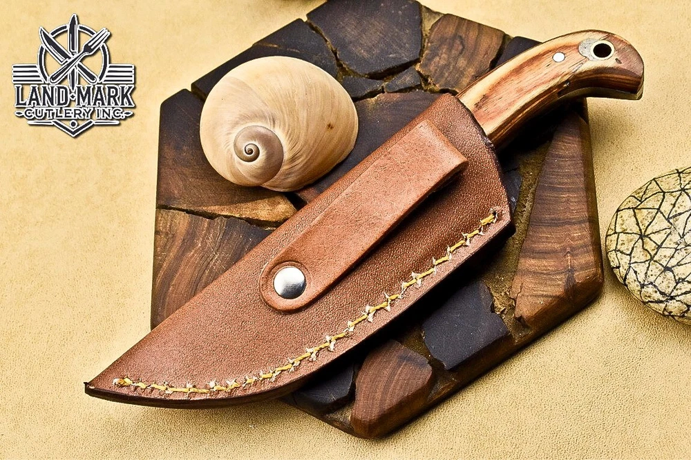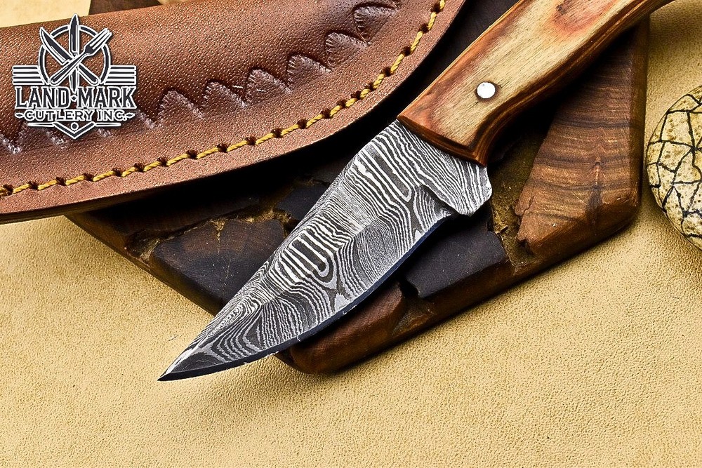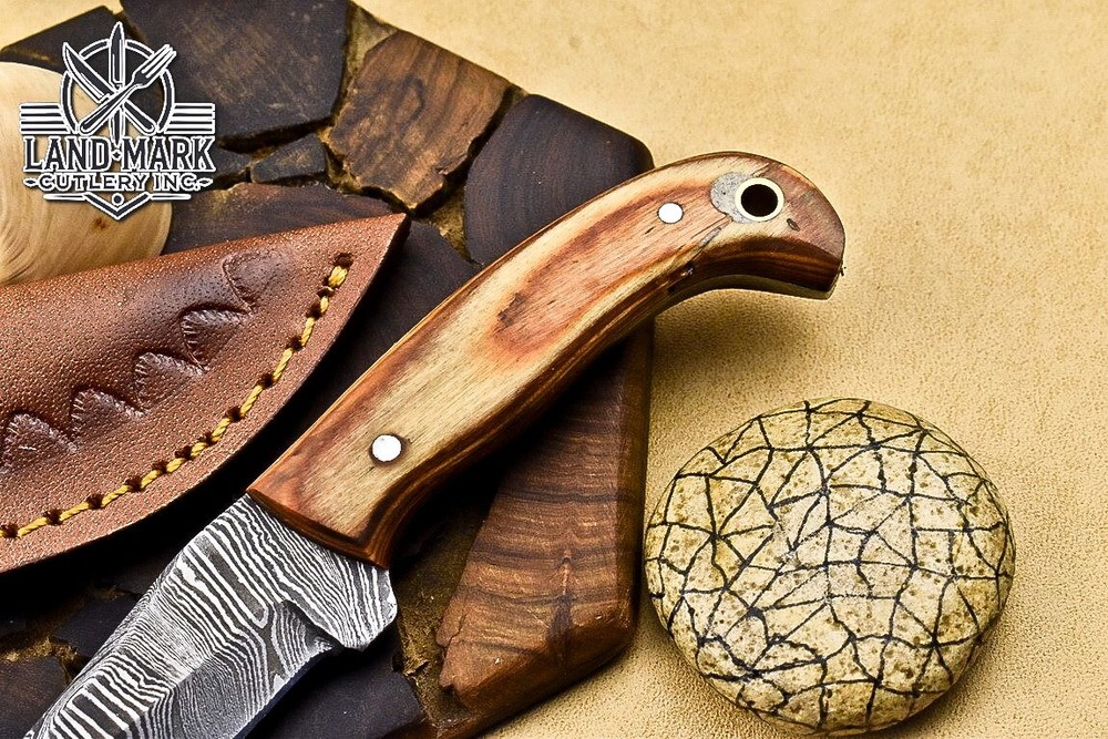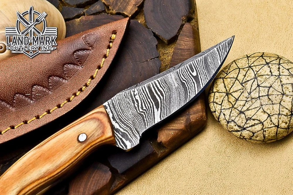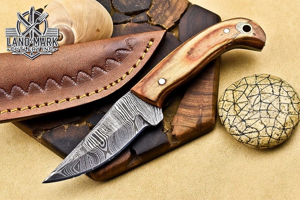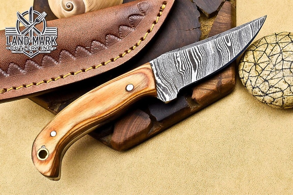 Handmade Damascus Steel Hunting Skinner Knife with Olive Wood Handle