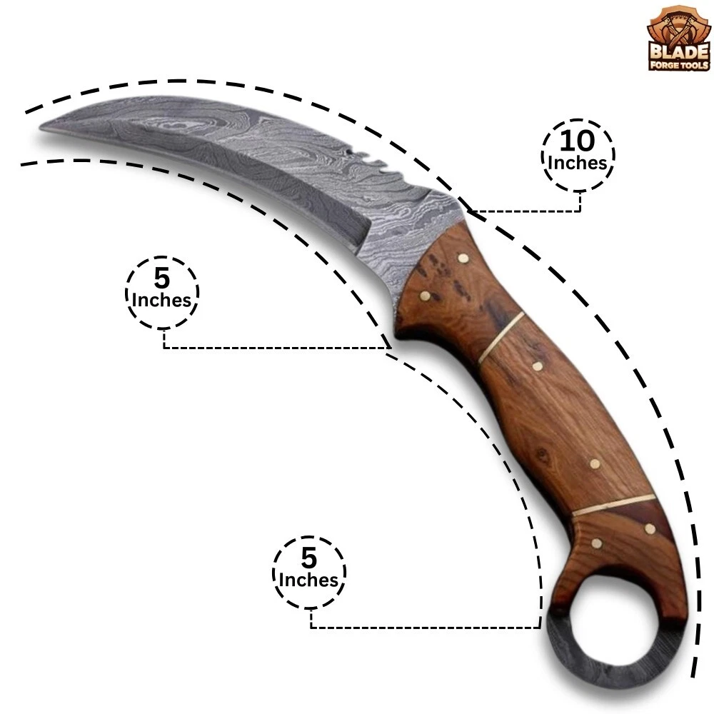 🪓⚔ Constructed to last and designed to perform, each Knife features a hand-hammered head with sharpened cutting Forged edge. Durable Leather Sheath cover: This Knife is complete with a top quality extra thick leather sheath. The leather sheath is totally hand tooled and sewn. Extra thick leather and strong stitching make this sheath robust which can withstand years of rough and tough use. The sheath can be worn on belt. It comes with a Protection Sheath that protects you from the edge of the Knife blade and avoids any harm and damages. Lightweight easy to carry. Knife total length: 10 inches, Blade Length: 5 inches The Best Companion Of The Explorer: ⚔ If you like adventure, camping, outdoor sports, please bring it, because it will be your most useful partner for exploring adventure! Excellent Design- Ergonomically designed handle, feels great to hold in your hand and comfortable to use.