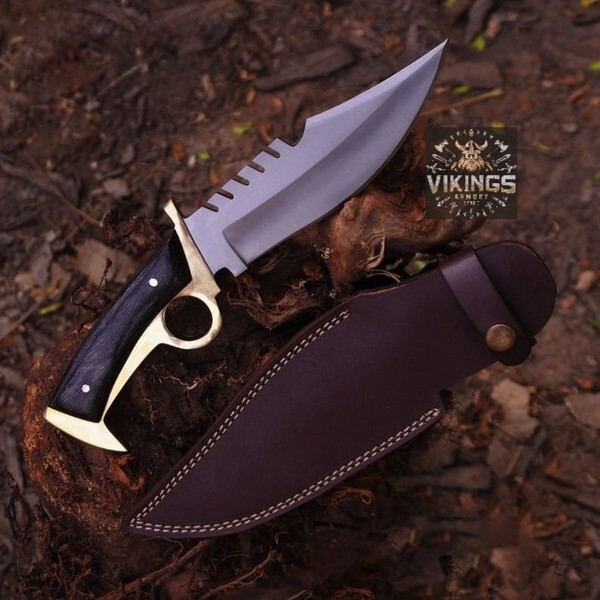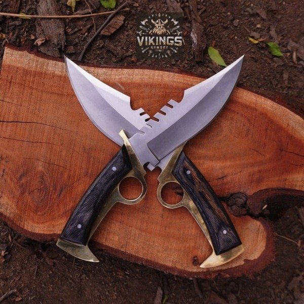 Custom Handmade Tracker Knife Set with Brass Guard & Rosewood Handle (Set of 2) Unleash your inner warrior with this stunning set of two handcrafted tracker knives, designed for power, precision, and aesthetics. Each knife features hidden Tang High Carbon steel blade with a fierce sawback spine and a razor-sharp edge, perfect for hunting, camping, survival, or display. The unique blade design offers enhanced cutting and chopping capabilities, while the deep finger ring ensures a secure and controlled grip in any situation. Crafted with dark polished rosewood handles and gleaming brass guards and pommels, these knives are not just tools—they are works of art. The ergonomic handle design guarantees comfort during prolonged use, while the solid brass fittings add a touch of elegance and strength. Specifications : Blade Material: High Carbon Steel Handle Material: Rosewood with Brass Guard & Pommel Total Length: Approx. 10-12 inches (each knife) Blade Style: Tracker Quantity: 2 Knives Whether you're a collector, outdoorsman, or enthusiast, this knife set is a bold addition to any arsenal. Ideal as a gift or for your personal collection. SHIPPING We use DHL or UPS normally. 5-7 Business days delivery and trackable easily. International shipping custom duty is paid by the customer, we are not responsible for the custom duties applied by your countries rules and regulations. For more queries contact us Customization Available Quality is Assure We deliver through DHL Please check Dhl Coverage area before placing order if your Address fall in DHL remote Area List You will have to pay $50 or change your Address Your satisfaction is very important for us if you have any issue contact us first before leaving any bad Review your issue will be resolved more efficiently ASAP Vikings Armory