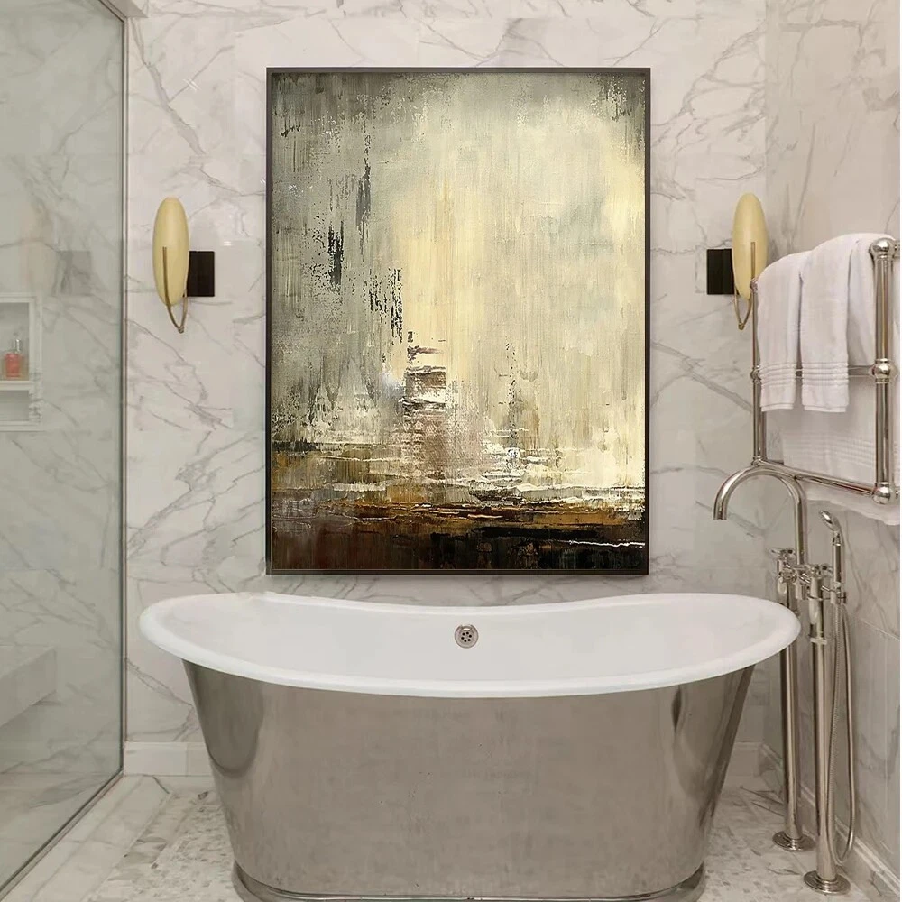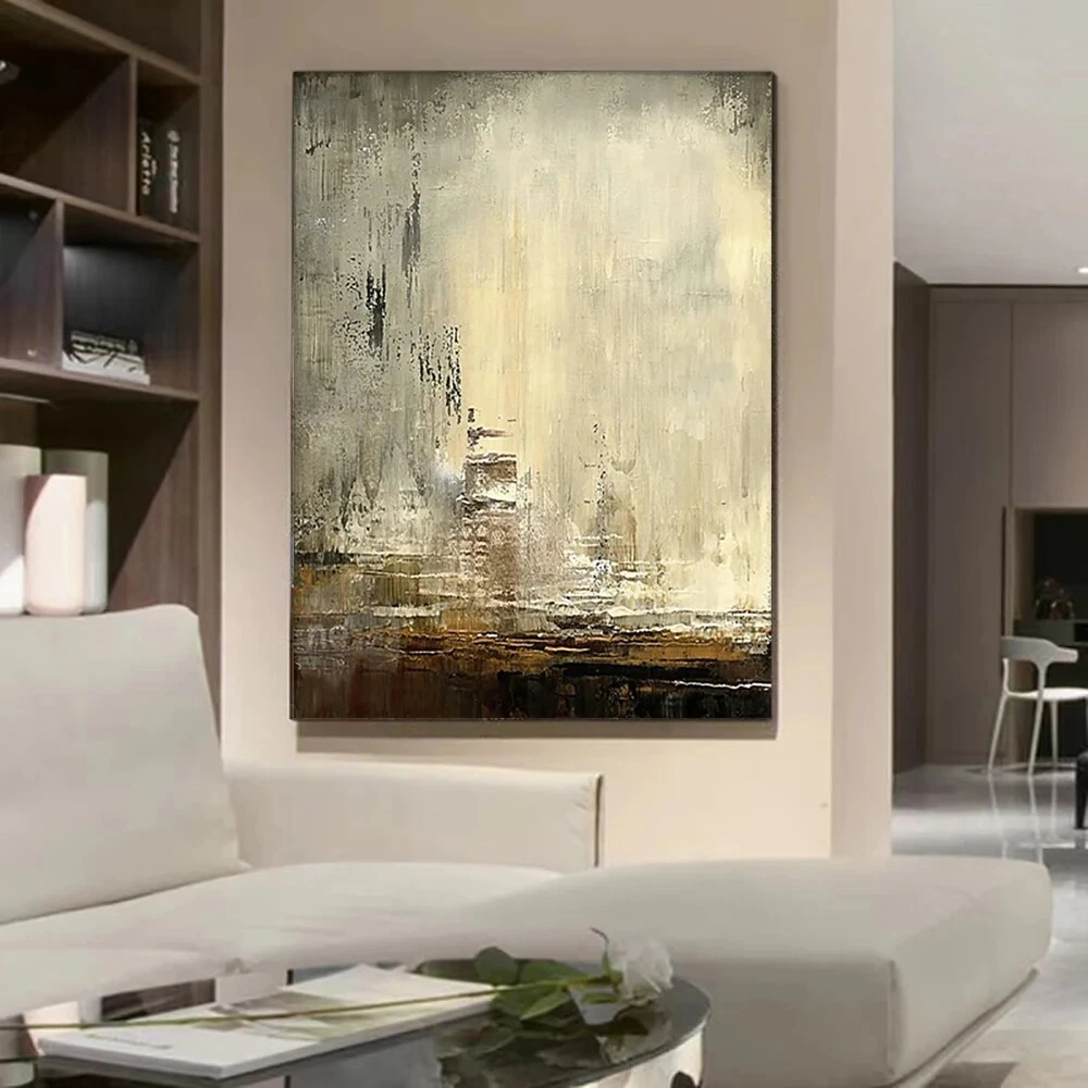 Handmade Large Wall Art Beige Brown Abstract Painting For Living Room Office