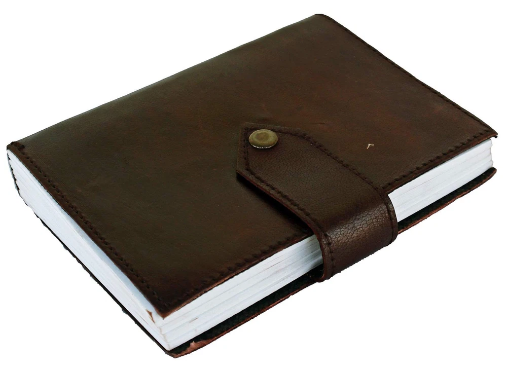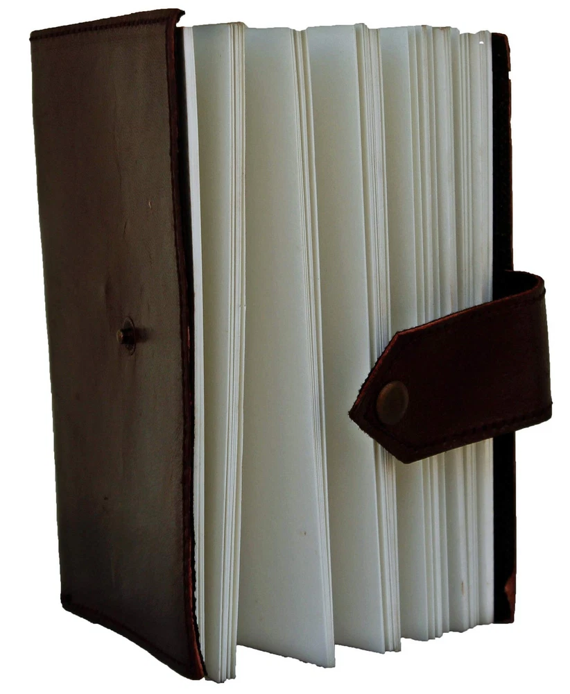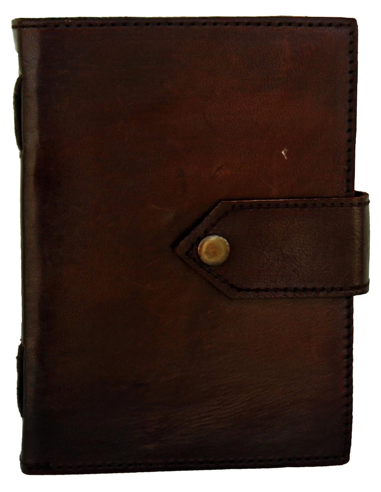 Bound handmade fiber paper with Genuine Leather covers was once the standard for recording historical events, and even religious followings. This diary is handmade at a time just like the diaries were in the Medieval Renaissance period to accurately reflect the same quality and level of detail as ancient times. This book contains 110 to 120 thick, soft pages of authentic handmade fiber parch paper and Recycled materials that hold any type of ink and perfect for classic calligraphy and scripting. Whether you want to write poetry or spill your heart and soul out onto the handmade fiber pages, you can personalize this handmade book to your will. The front cover of this handmade leather diary depicts a simple plain style with stitched leather edge. The cover is 100% genuine leather and are handmade from top to bottom. Securing your personal thoughts is easy to achieve since this leather diary comes with an attached leather strap that doubles as a bookmark FEATURES: 5 inches wide, 7 inches tall and about 1.25 inches thick with acid-free Plain Cream recycled cotton pages suitable for use with any type of pen for all everyday writing tasks, Front face also covers with a quality Touch Button that keeps it secure. Perfectly suited for accepting , pen, pencil, or even paint, Non bleeding & eco friendly papers. PREMIUM QUALITY: Genuine Durable leather cover made by experienced craftsman with strong stiches to ensure long term utility. Excellent quality, acid-free paper, made of recycled biomass, quality leather looks antique and rustic, soft, smooth, but no smells. The classic elegant design style of this notebook memo never goes out of fashion, which makes it useful for a long time. MULTIPLE FUNCTIONS: Each journal is carefully hand bound enabling you to pour your thoughts easily This leather notebook is a great and classy way to record your life. Ideal for any budding Writer Artist or anyone simply wanting to do some high-quality note taking, Best alternative for Creative writing, Artist Sketchbooks, Travelling Notes, Business Executive, Hunting Logbook, Poetry Work, Journalists, Food Planner and Bible Journaling Cartoonists, Poets, Designers, Graphic Artists etc. VINTAGE CHARISMA: Beautifully handcrafted Soft & Supple Dark Brown Genuine Leather is being made from 100% natural leather, our journals may vary in look & shade, producing a unique item, no are quite the same giving it a antique classy vintage rustic look - a special keepsake for your thoughts, plans & ideas in this Hardcover executive notebook PERFECT GIFT: A must have for all traveller and an ideal gift for your family and friends, or even yourself, this distinctive refillable journal will help words flow freely. A gift for all occassion graduation, Christmas, Mother's Day, Father's Day, Teachers day, Valentines Day, Halloween, long trips, or other special events for men & women.