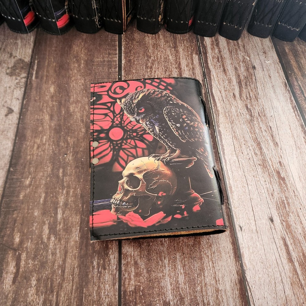 Capture thoughts, sketches, and dreams in this stunning handmade leather journal, featuring a beautifully embossed skull intertwined with a bird. Crafted from premium genuine leather, this vintage-style sketchbook is perfect for artists, writers, and dreamers. ✔️ Premium Leather Cover – Handcrafted from high-quality full-grain leather for a timeless, rustic look. ✔️ 200 Deckle-Edge Pages – Made from eco-friendly, unlined handmade paper for a unique writing and drawing experience. ✔️ Multiple Sizes Available – Choose from 7x5 inches, 10x7 inches, or 13x10 inches to suit any need. ✔️ Hand-Tied Binding – Durable and flexible, allowing the journal to lay flat when open. ✓ Halloween lovers & gothic aesthetics ✓ Artists & writers looking for inspiration ✓ Wedding & anniversary gifts for creative souls ✓ Dream journaling & personal reflections Versatile Use: This leather sketchbook works beautifully as a diary, art journal, travel notebook, spell book, or wedding guest book. Whether capturing everyday thoughts or intricate illustrations, it provides the perfect canvas for creativity.