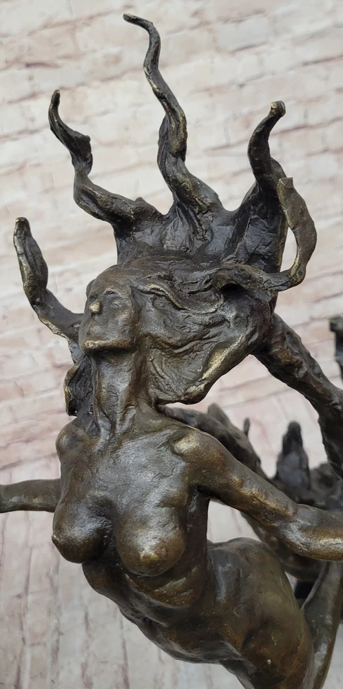 Handmade Medusa Bronze Sculpture NUDE Statue By Jean Patoue Figurine Gift Decor Handmade Medusa Bronze Sculpture NUDE Statue By Jean Patoue Figurine Gift Decor Condition : This sculpture is in perfect condition. Bronze Dimensions with Marble Base: Height 30" X Width 13" Marble Dimensions:13" X 7" Height without base 29" Weight:40 LBS Inventory:85Y17819058 Experience the enigmatic allure of our captivating bronze sculpture, a masterful creation that evokes a sense of power and mystery. At the base, a fierce countenance with fiery hair and intense eyes commands attention, exuding an air of controlled fury. Rising from this foundation, a nude woman emerges with a sense of liberation, her outstretched arms and upturned palms symbolizing an offering of emotions. Her ecstatic expression, head thrown back, adds an element of intrigue to the composition. Intricate and lifelike, this sculpture is the result of the meticulous lost-wax casting technique, allowing each detail to be immortalized with breathtaking precision. The fusion of artistic vision and technical skill gives rise to a truly captivating piece. Resting gracefully on a sleek black marble base, the sculpture finds its perfect stage for display, enhancing its visual impact and significance. Elevating the sculpture's prestige, the distinguished signature of renowned artist Jean Patoue graces this remarkable artwork. With this sculpture, Patoue's artistic prowess shines through, inviting you to explore the depths of its narrative and craftsmanship. Whether adorning a private collection or serving as a focal point in your space, this bronze masterpiece is a testament to the enduring allure of art that speaks to both the senses and the soul. Vintage Abstract Modern Art Nude Medusa Greek Mythology Bronze Sculpture Statue www.bronzhaus.com Video will open in a new window Using the eBay App? Paste link into a browser window: [isdntekvideo] Shipping Terms : Most of our items are shipped via USPS (United States Postal Service) mail or UPS. Most orders are shipped within 24-48 hours of purchase. Please be aware that not all items are available for USPS shipping due to size and weight. We do ship to Hawaii, Alaska, Canada, Puerto Rico, APO/AE, and U.S. Virgin Islands, however, an additional charge may be required. Please contact us before making any purchases in these areas. For Non-USA customers, you may be responsible for all duty, tax, brokerage fees that may be due upon delivery (shipping costs cover freight charges only). We also ship internationally. Please refer to the "Shipping and Handling" chart for the rates for each area. Payment : We accept just about any form of payment. PayPal, Master Card, Visa or American Express credit cards. Money orders, cashiers checks, and even personal or business checks. For governmental institutions, we will also accept a purchase order. Please understand that for personal or business checks we have to wait for the check to clear (usually 7 days) before shipping. Condition : New Detailed Hand Crafted Hot Cast Bronze Satisfaction Guaranteed. This is Stock Photo, Slight Color Variation!! Listing and template services provided by inkFrog