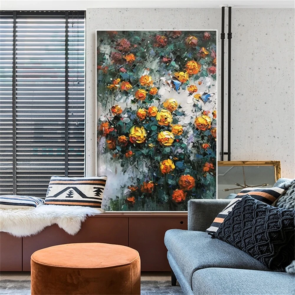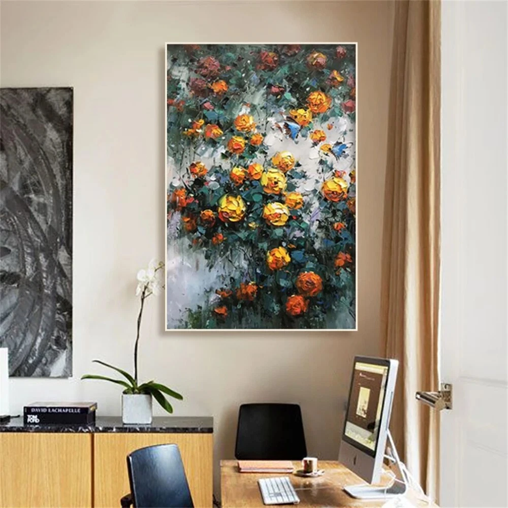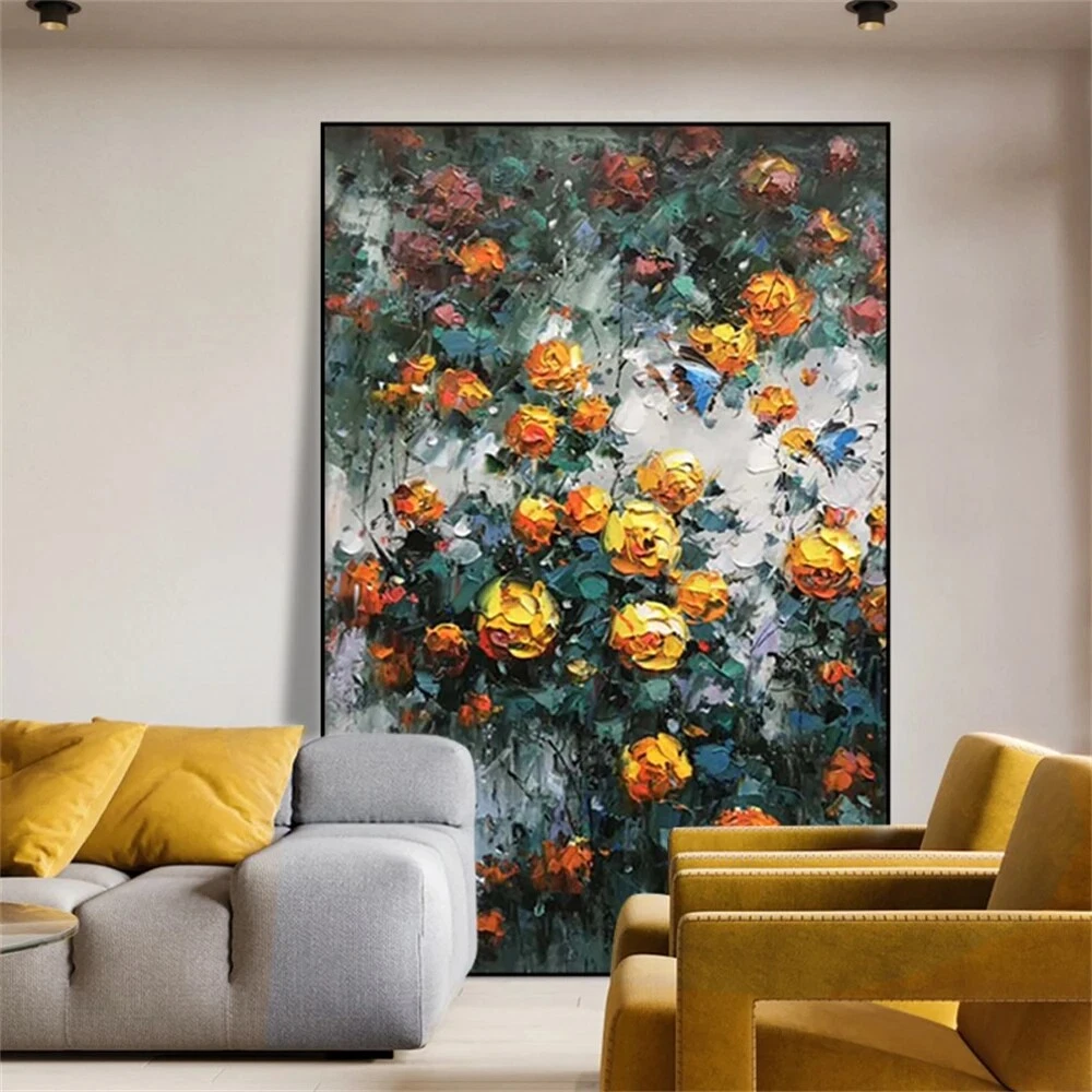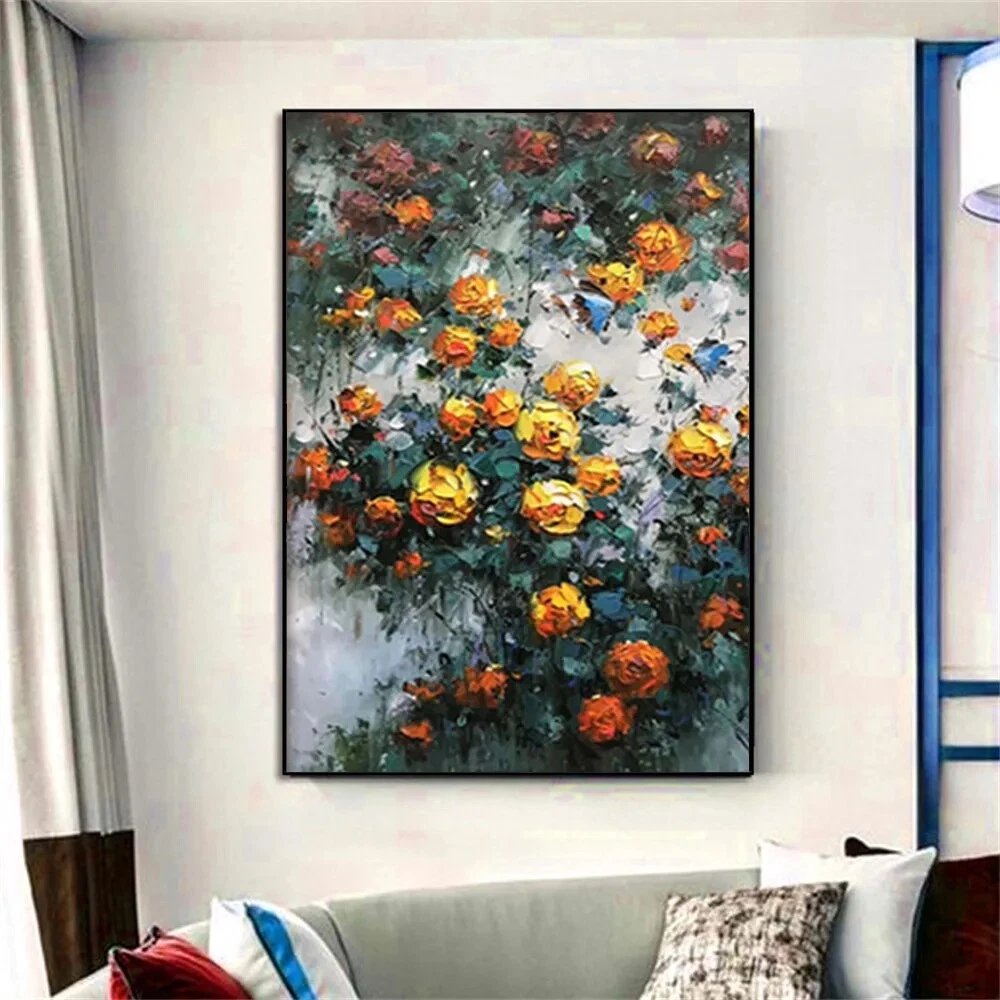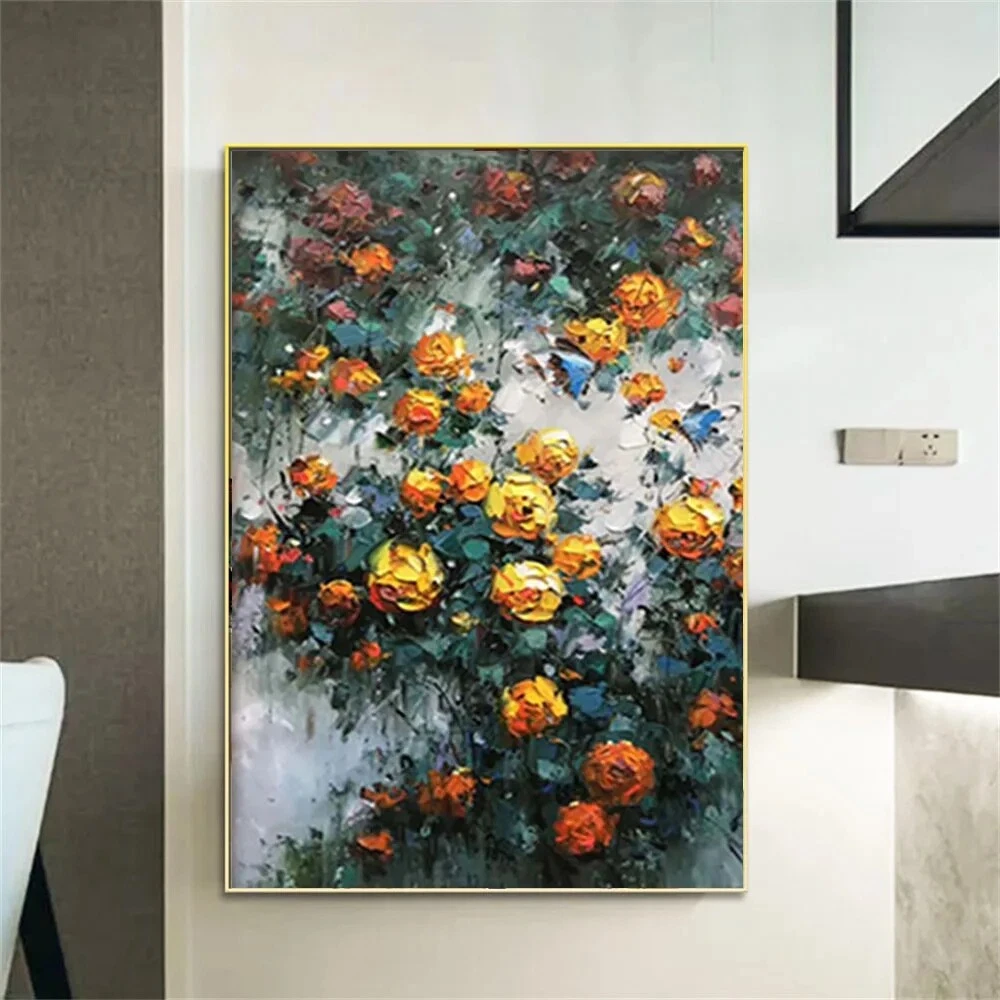 Handmade Modern Garden Landscape Picture Yellow Flowers Abstract Style Thick Oil