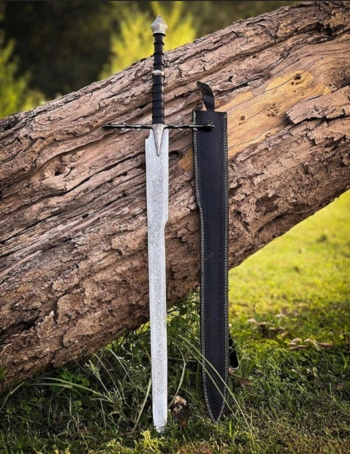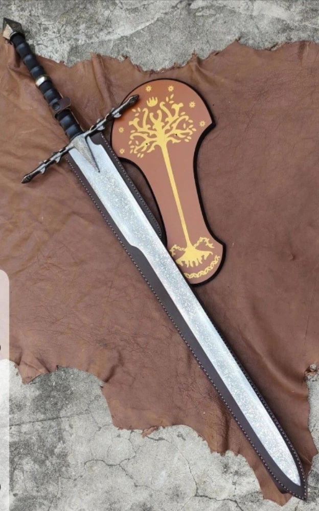 Crafted with meticulous attention to detail, the Nazgul RingWraith's Replica Sword is a stunning piece that will captivate the attention of any enthusiast. The full tang construction ensures durability and balance, while the cord-wrapped handle provides a comfortable grip. The sword's silver hue and stainless steel blade material reflect a fusion of style and functionality, making it an exceptional addition to any collection or cosplay ensemble. Embrace the fantasy of the Lord of the Rings with this authentic Mughalqa-brand replica, which is a tribute to the iconic weapon wielded by the fearsome Ringwraiths. This piece is a must-have for collectors and fans, made ambidextrous for versatility and featuring a sleek, original design that's sure to stand out at any event, including the New York Comic Con. Handcrafted Fantasy Sword Replica - Groomsmen Gift, Boyfriend Gift, Husband Gift Step into the mystical world of fantasy with our meticulously handcrafted replica sword. This piece is inspired by legendary tales of powerful beings and ancient battles, making it a striking addition to any collection. Features: Authentic Design: Modeled after iconic fantasy swords, this replica features a battle-worn metal crossguard and pommel. Premium Materials: Crafted with a genuine leather-wrapped grip and a robust rat-tail tang construction. Impressive Dimensions: Total Length: 41 inches Blade Length: 29 inches, acid-etched and tempered 420 J2 stainless steel Exclusive Display: Comes with a 10"x 13 7/8"x 3/4" wooden plaque, ideal for wall hanging. Perfect For: Groomsmen Gifts Boyfriend Gifts Husband Gifts Fantasy Enthusiasts Bring the allure of ancient legends into your home with this detailed and striking replica sword. Whether as a gift or a collectible, it's sure to captivate and impress. Note: All our products are designed as decorative items and are not intended for use as weapons