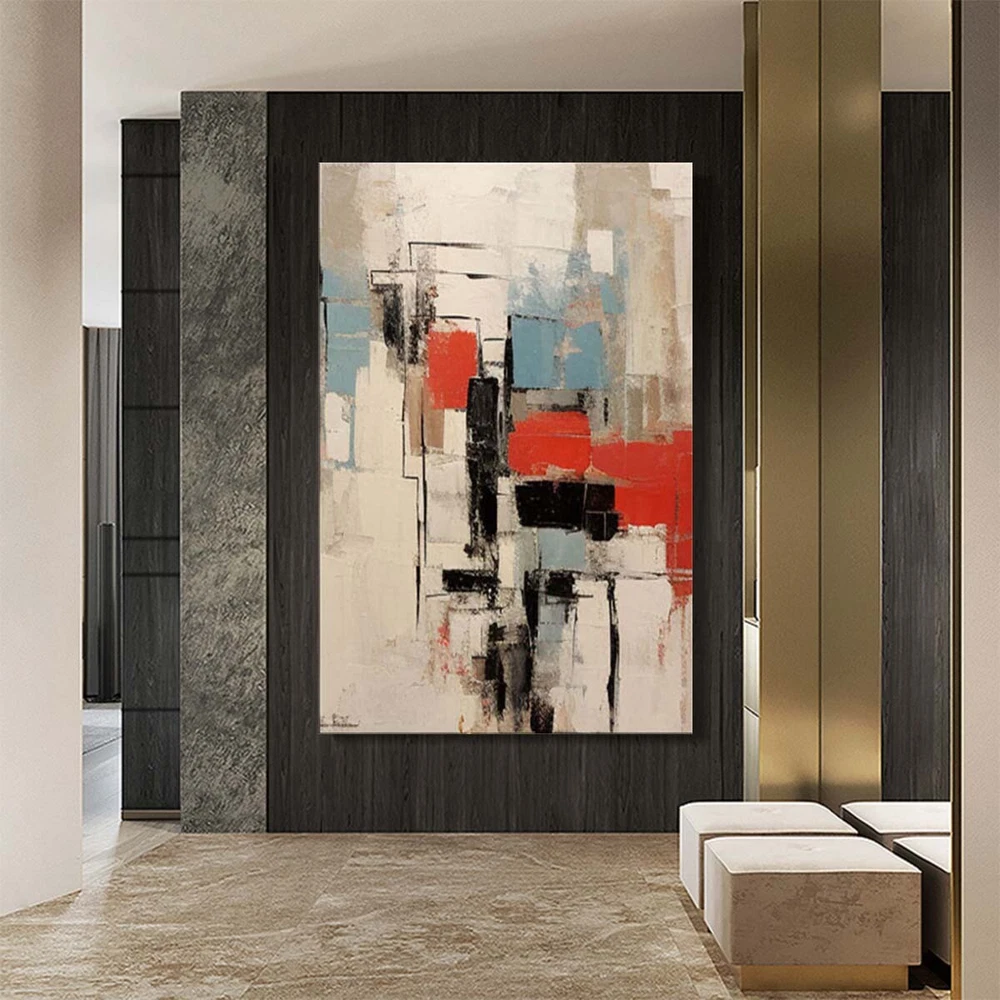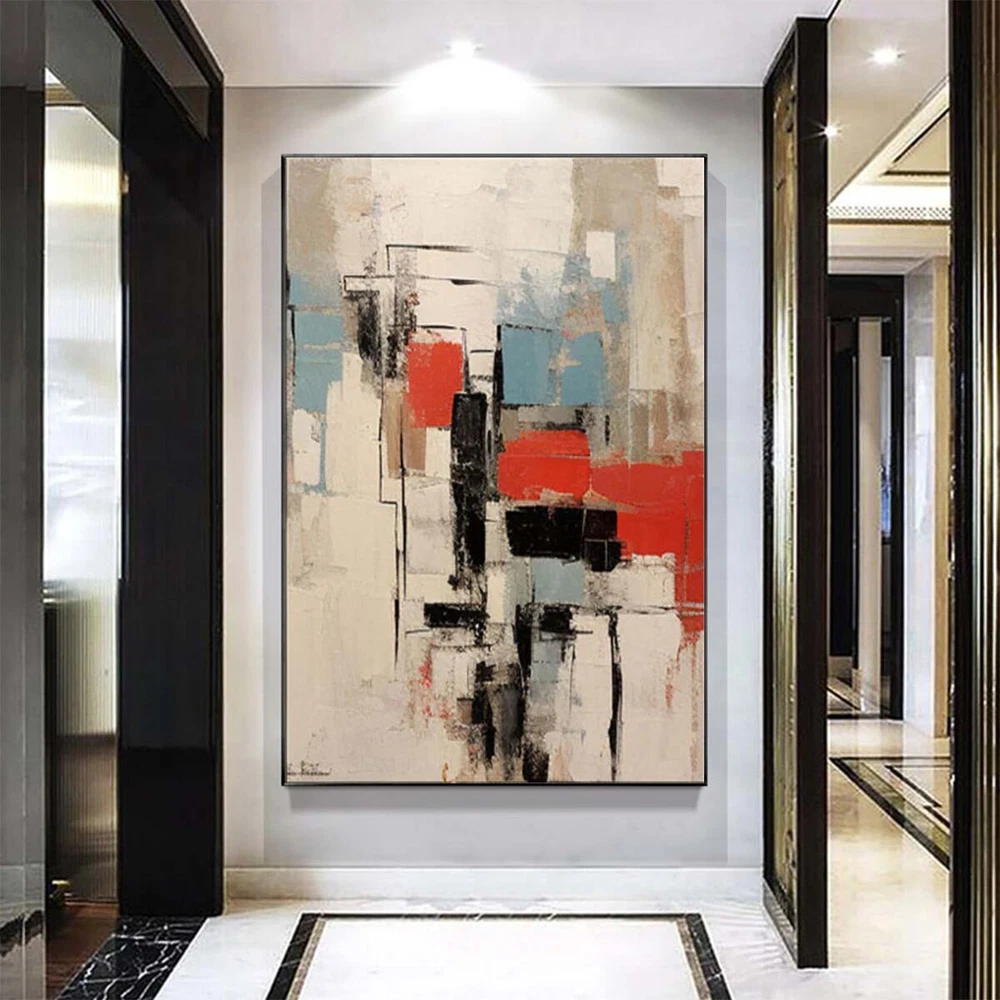Handmade Oil Painting Abstract Art Oil On Canvas For Living Room Blue Red