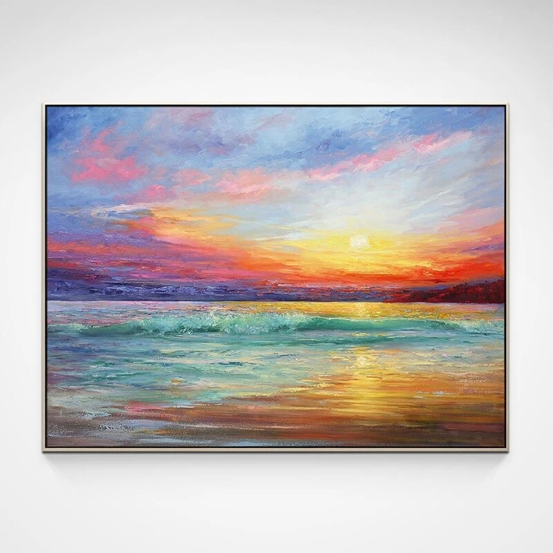Handmade Oil Painting Abstract Sea Decor Sunrise Painting Landscape Picture