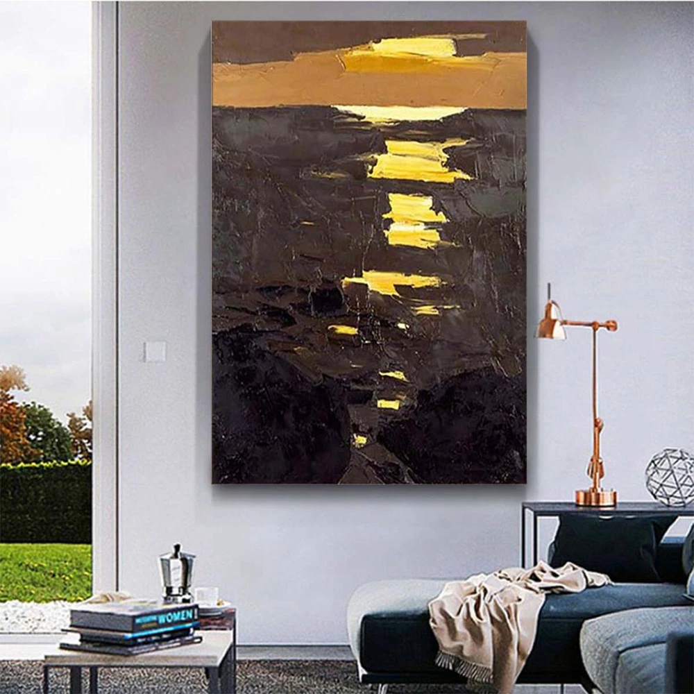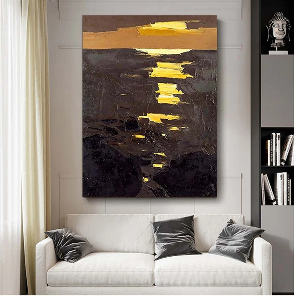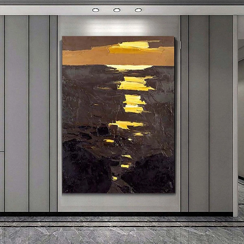 Handmade Oil Painting Canvas Wall Art Decor Picture Abstract Sunrise Texture