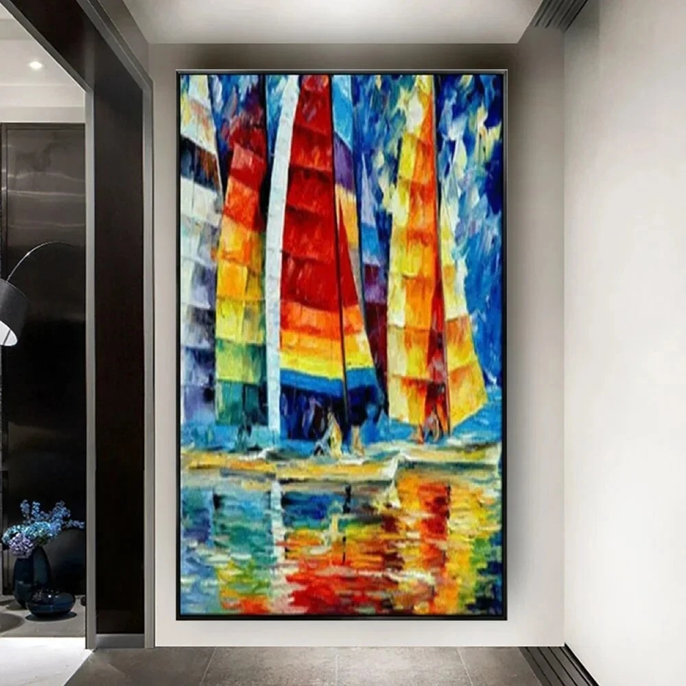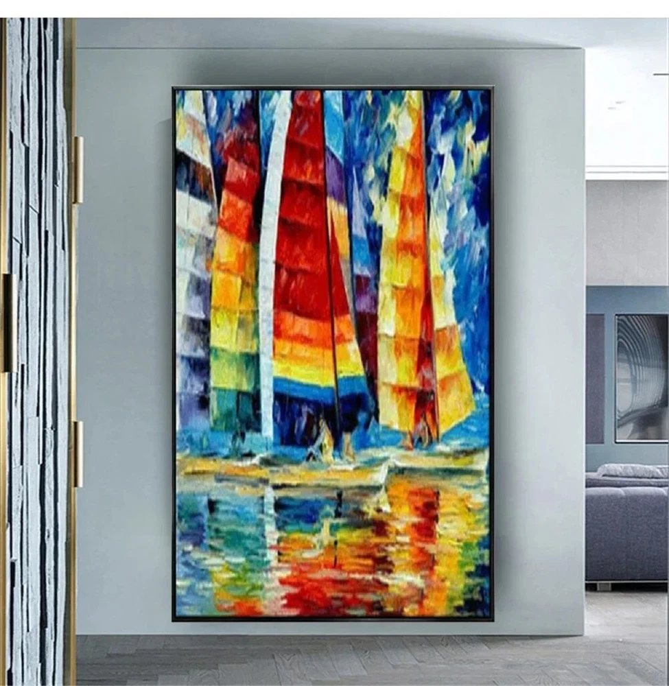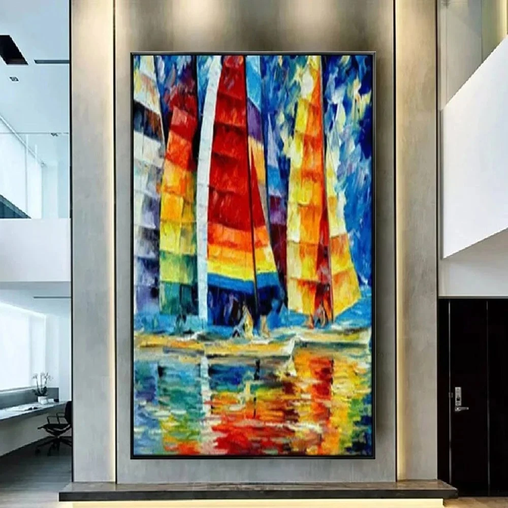 Handmade Oil Paintings Colorful Wall Art Abstract Sailing Boat With Sea View