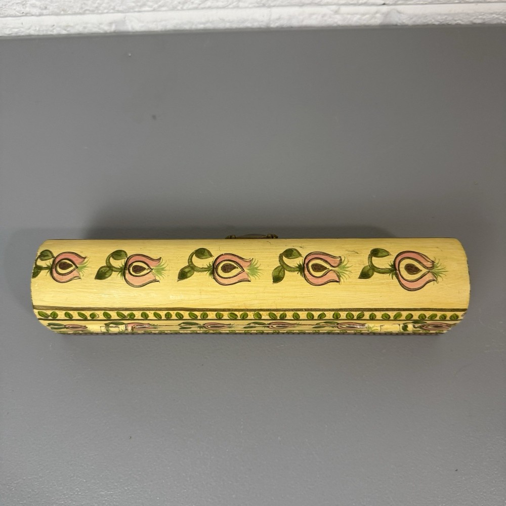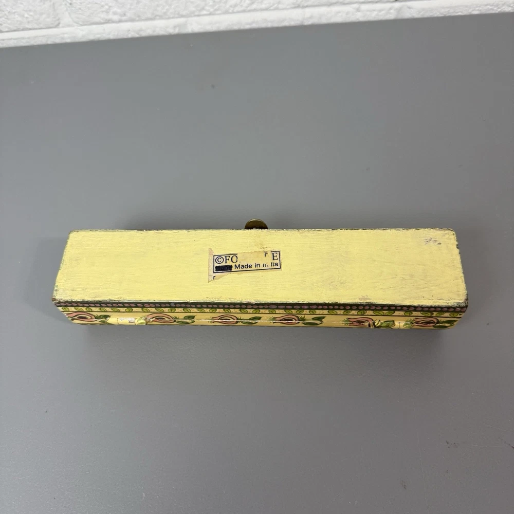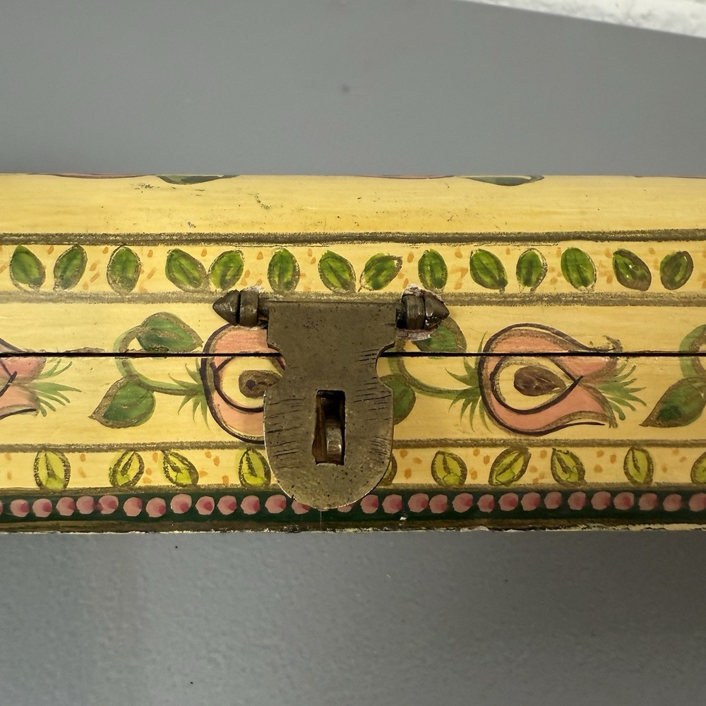 Pretty handpainted trinket box, clean interior. 9 x 2 x 2