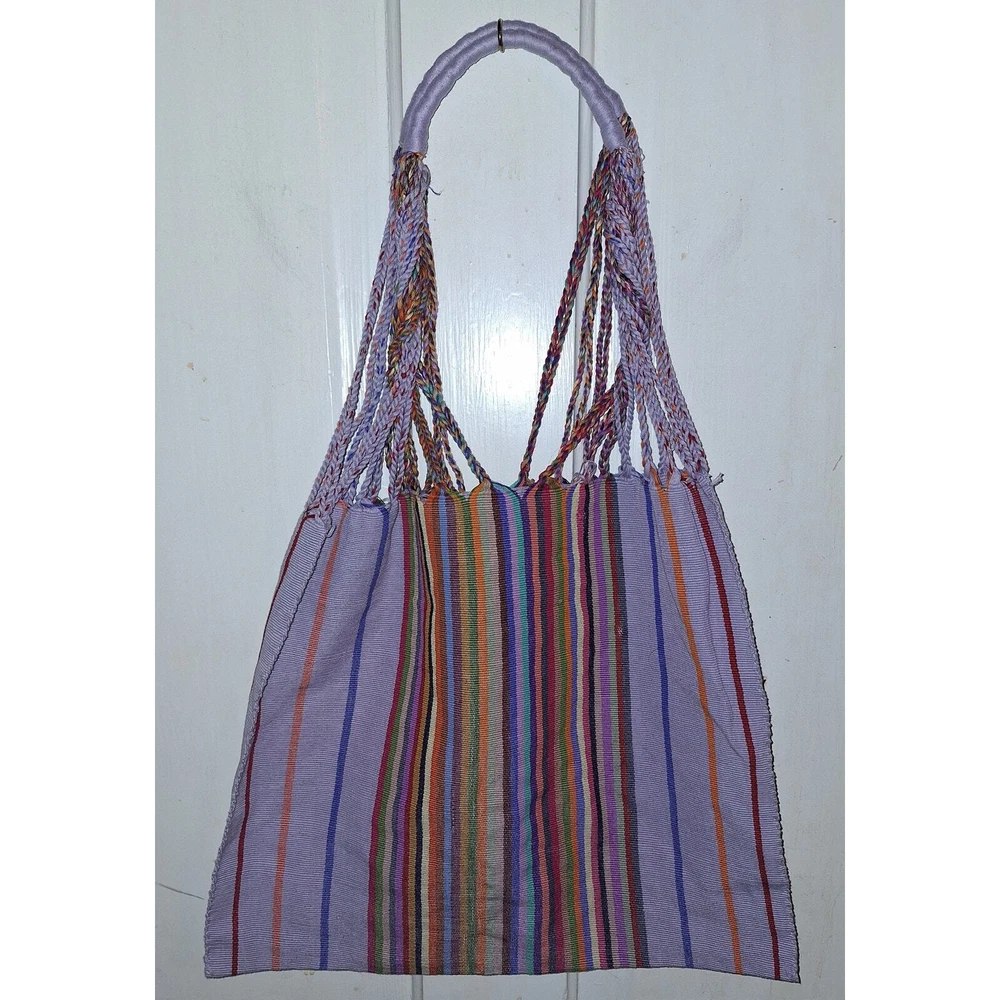 Handmade Purple and Multicolored Reusable Tote Bag Purse Boho Festival Grocery