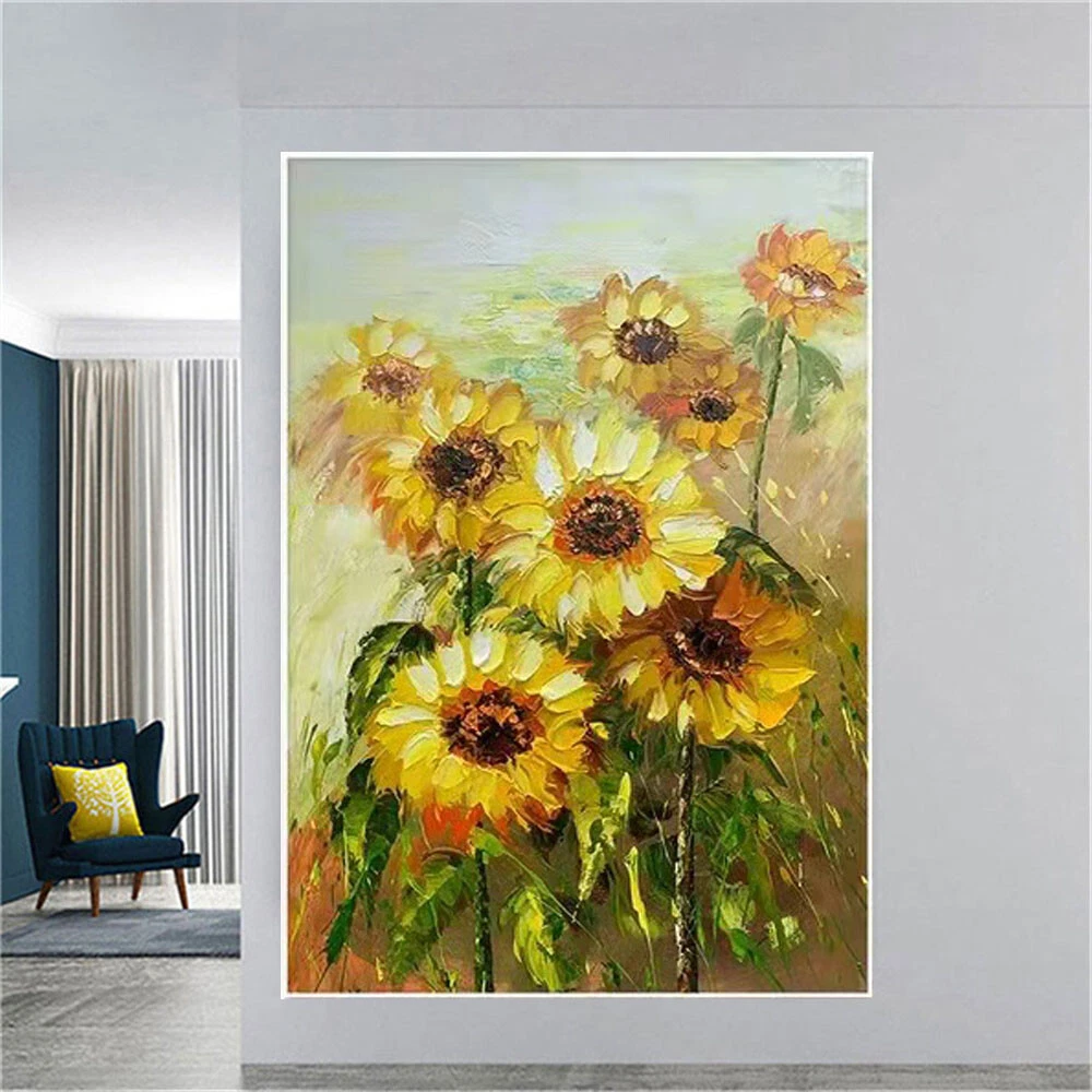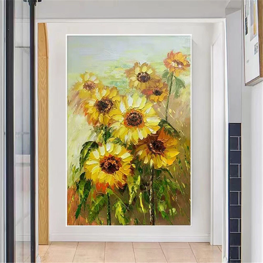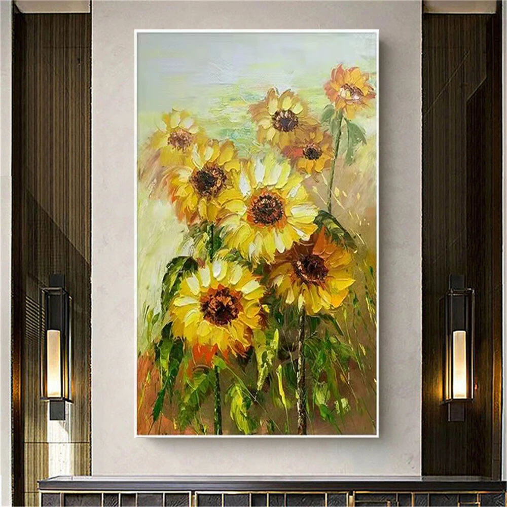 Handmade Van Gogh Oil Paintings Abstract Flower Sunflower Yellow Thick Oil