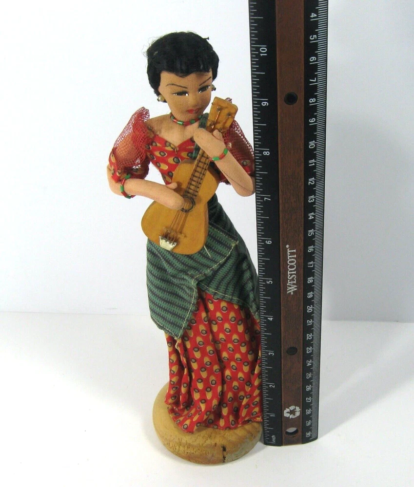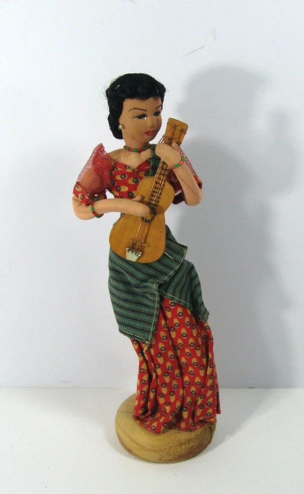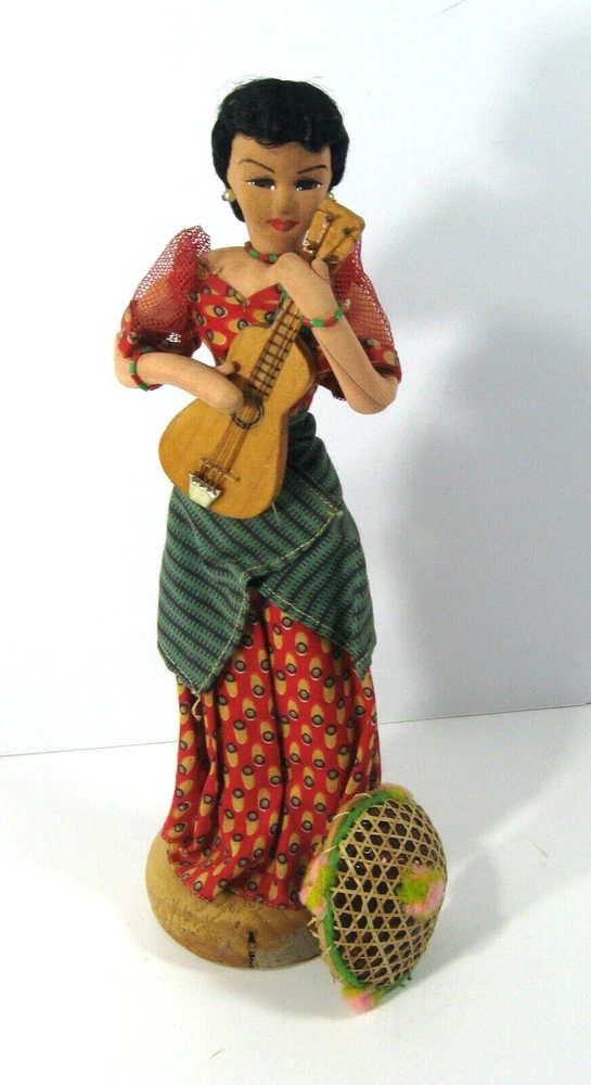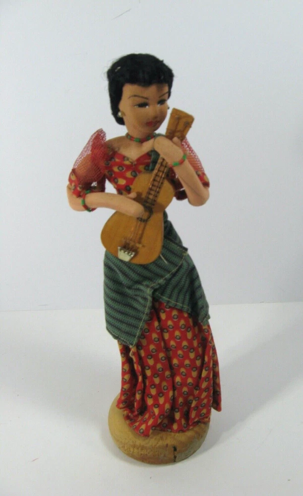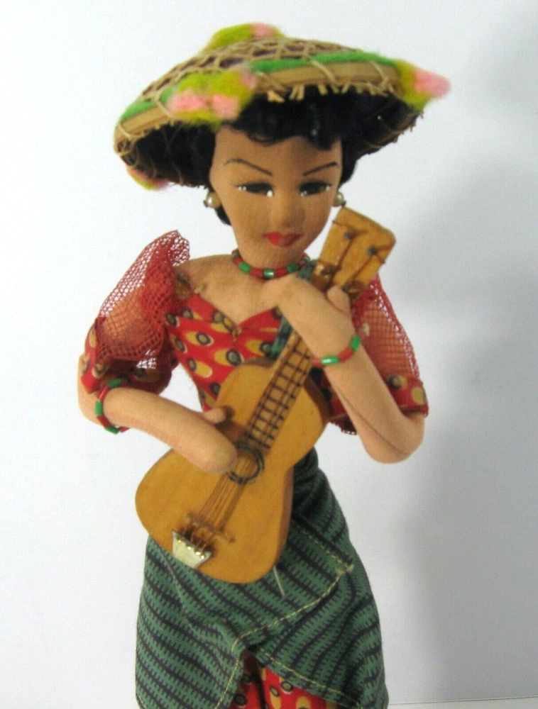 This handmade vintage doll is a wonderful representation of the Filipino female icon, Maria Clara, with her guitar. Procured in the 1950it was made in the Philippines. It is a unique collectible item that showcases the Pacific Islands culture. The doll is handmade, making it a one-of-a-kind piece. See our ebay store for our other exquisite Maria Clara dolls and keepsakes. thanks!