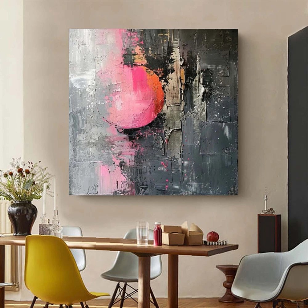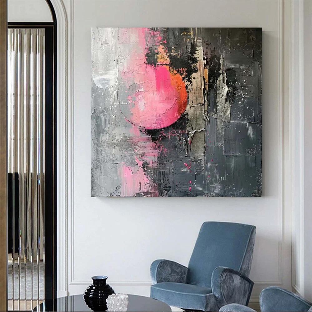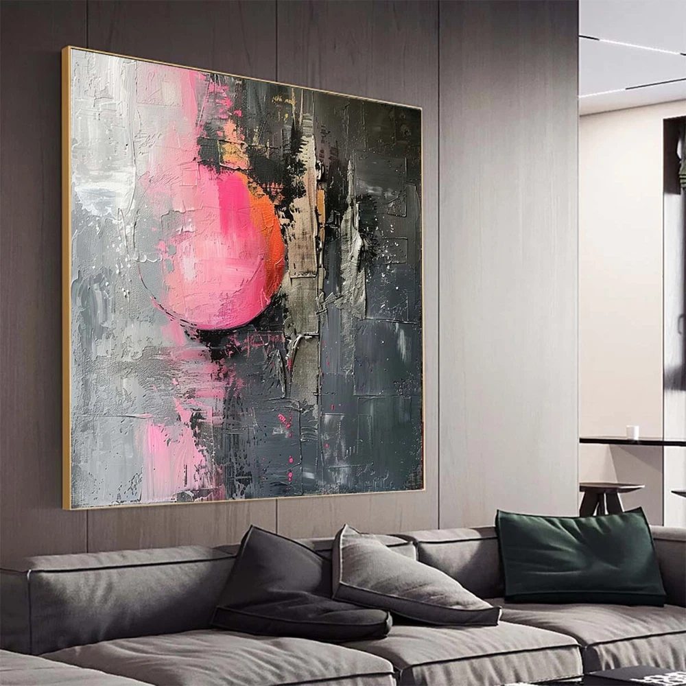 Handmade Wall Art Home Decorative Oil Painting Abstract Knife Living Room pink
