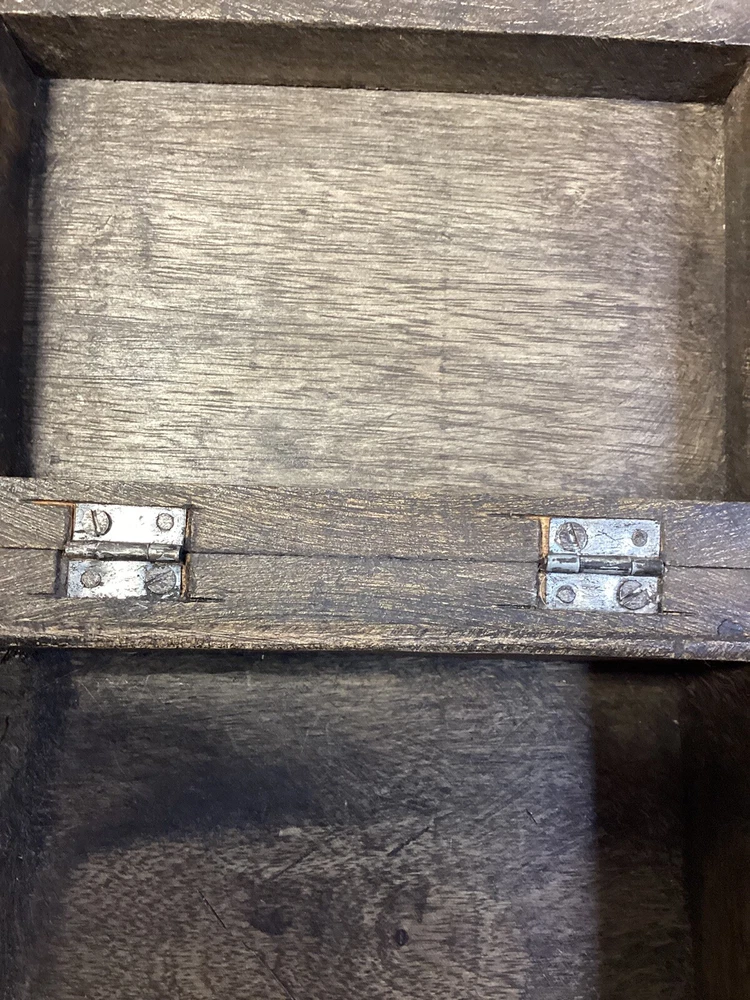 Nice handmade, hand carved wood hinged box. Could be used for anything you want to put in it. Well built. The hinges are in very good condition and tight. I'm happy to answer any questions you have. Please see pictures for more details. Thank you for stopping by!