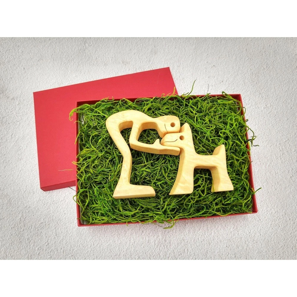 Handmade Wooden Terrier and Owner Figurine Unique Hand Carving Home Decor Look at this couple! I'm sure they bring their owners happiness and pure love! Great present for terrier and just dogs lovers, friends, mom and dad... It's just great present! The figure is made of maple burl wood, processed with special orange oil and wax. Ideally smooth surface, without hooking -looks like marble High - 3.5" (9 cm) Width - 4.7" (12 cm) This figurine will be the only one, because we never use the same kind of tree sample. And for sure nature never will make the same pieces like snowflakes. We only looking for perfect peace of wood for THAT ONE!