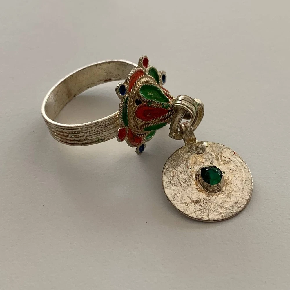 Handmade ancient moroccan amulet bronze with green stone rare