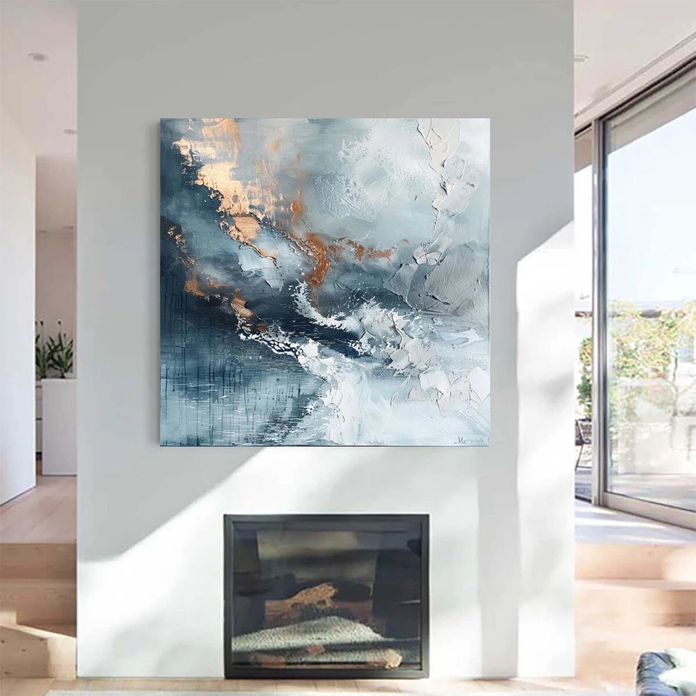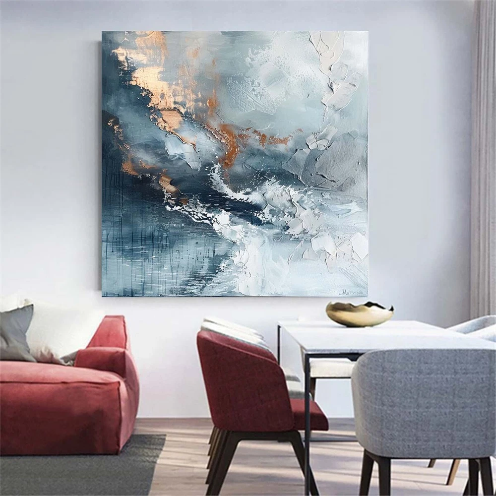 Handpainted Blue Abstract Oil Paintings On Canvas Abstract Wall Art Home Sea