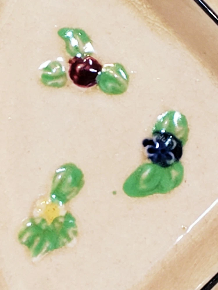 Handpainted Japan Slotted Relish Dish 4 Slots 9". There are 4 spots looks like maybe a Handle went across. Nice 4 slotted dish for condiments relish black olives pickles and so on . Has a couple of flea bits that can be touched up no cracks.