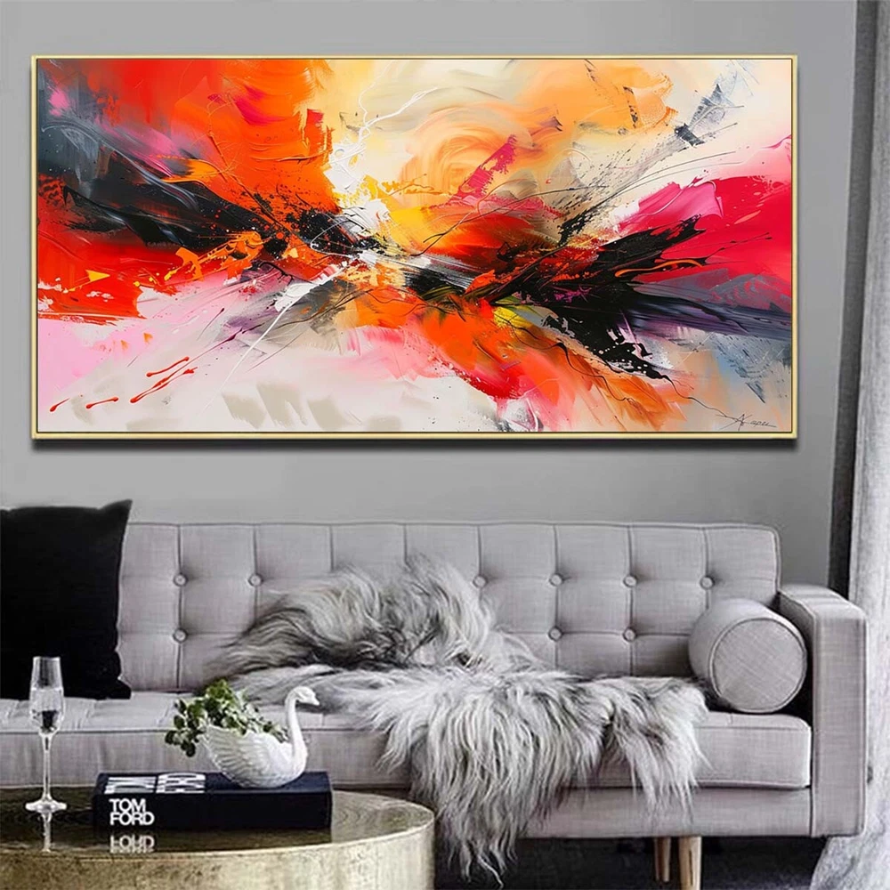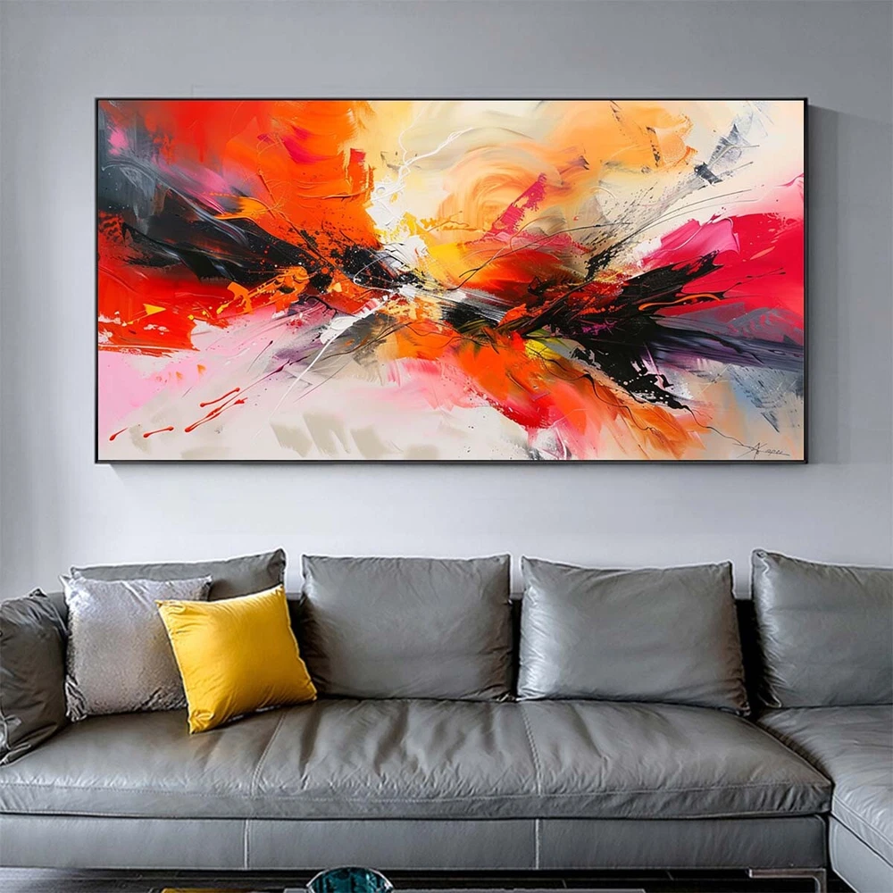 Handpainted Red Abstract Oil Painting On Canvas Wall Art Pictures Black Gray