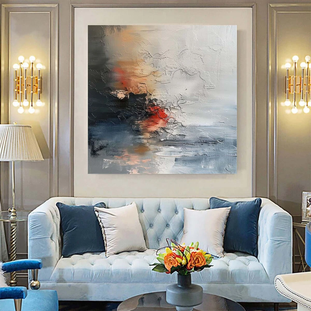 Hand-painted oil painting Abstract on canvas Modern wall decor art Sea Gray