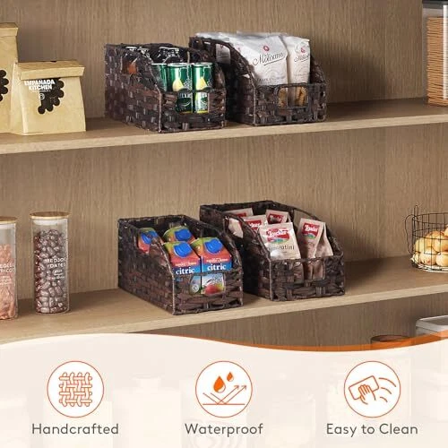 Return Policy Fast Delivery Trusted seller Handwoven PP Wicker Storage Basket, Waterproof Imitation Rattan Basket with Built-in Handles, Trapezoid Baskets for Organizing Shelves, Pantry, Black Walnut, 2-Pack (Large+Medium) Product Description Premium Durability: Crafted with high-quality handwoven PP wicker and reinforced with a thickened metal inner frame, the wicker storage basket ensures exceptional sturdiness and longevity Four-Piece Set: This set includes four baskets, available in two sizes: 7.87 × 11.8 × 7.08 inches and 6.69 × 10.62 × 6.49 inches provides versatility and convenience; Each imitation rattan basket is handmade, so slight variations in size may occur Versatile Use: These woven baskets are ideal for storing spices, vegetables, canned goods, snacks, books, games, media, toilet papers, hand towels, and laundry supplies; Perfect for kitchens, pantries, living spaces, bathrooms, and laundry rooms Waterproof Material: Treated with waterproofing, these trapezoid decorative baskets can be easily rinsed with water and are especially suitable for areas with high humidity, such as the kitchen, bathroom, and laundry room Easy to Use: Each basket has three built-in handles allowing for easy carrying and moving from the front or sides; The trapezoidal design ensures that items are easily visible and accessible; When not in use, the shelf baskets can be stacked to save space Shipping Returns Payment Shipping Shipping is FREE to all addresses other than APO/PO boxes in the lower 48 states. All our stock ships from US-based warehouses. Shipped via USPS or UPS (depending on location and package weight) Unless stated otherwise, all orders will ship within 24-72 hours of your payment being processed. Check our feedback to see the great reviews of FAST shipping we offer. Returns Seller does not accept returns Payment We currently accept payment via eBay managed payments only. Once payment is cleared, we will dispatch your shipment within 1-3 business days. Please refer to the "Shipping" tab for more information regarding shipping speed to your destination.