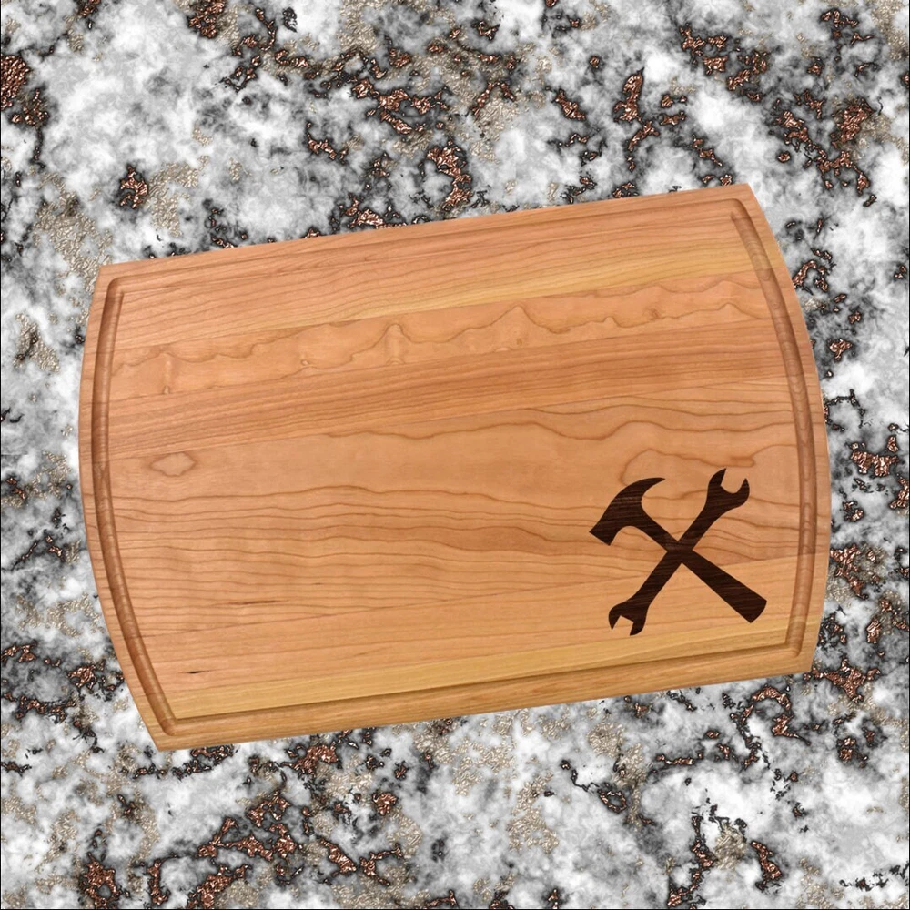 Design: Personalized Handyman Cutting Board or Charcuterie Serving Tray All items ship via USPS - please make sure your address is correct :-) Whether used as a charcuterie serving tray for snacks or cutting board, our bamboo, walnut and cherry custom boards are the perfect addition for the home and make the perfect gift for your loved one celebrating a birthday, anniversary, new home, wedding, etc! *** FEATURES *** • SIZES: We have multiple styles and sizes available. To see our current sizes available, click the drop-down menu. The photo slide contains a photo showing each side by side. Please note, the board with the juice groove only has the groove on the front side of the board. • THICKNESS: Bamboo Boards - Approximately 1/2" Thick; Walnut & Cherry Boards - Approximately 3/4” Thick • UNIQUE: Every board is unique with the grain and coloring varying throughout - no board is the same! • CARE INSTRUCTIONS: Hand wash only with warm water. Do not soak. Please apply mineral oil throughout the board’s life. • PERSONALIZATION/CUSTIMIZATION: Do you want the text placed differently on the board? Please don’t hesitate to contact us. All personalization notes can be entered in the personalization box when checking out. • SHIPPING: All cutting boards ship within 2 to 5 business days. • WHOLESALE ORDERS: Please don’t hesitate to contact us for information about wholesale orders. Processing times for larger orders may change. • NOTE: Colors can vary a bit on different monitors and screens. Any props included in photos are not included. Please be sure to double-check your address to make sure it is accurate for USPS delivery. If a package is returned to us due to an invalid address, the buyer is responsible for all additional shipping charges. We appreciate you supporting small business – best wishes! For items ordered with simple edits, we do not send proofs since the layout doesn't change from the example(s). However, in the event there are requests that change the layout from the example(s), we do send proofs for approval before making the product. If you'd like a proof before we make the product, please note so in the personalization box.