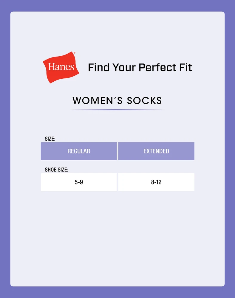 60 DAY RETURNS FREE SAME DAY SHIPPING MEN WOMEN BOYS GIRLS SHOP BY BRANDS Hanes Playtex Bali Just My Size Barely There Wonderbra L'eggs Hanes Hosiery Maidenform Lilyette Style : Item Description STEP INTO TOTAL COMFORT Keep your feet warm and comfy no matter where the day takes you with these women's no-show socks from Hanes. The comfortable women's socks are crafted from a soft cotton blend featuring the perfect amount of stretch for easy movement. A reinforced heel and toe make these no-show socks a style that's meant to last, while the cushioned bottom provides comfort without the bulk. These women's no-show socks are offered in a convenient 10-pack, so you can stock up and start enjoying the coziness all-day, every day. VALUE YOU LOVE - Available in a convenient 10-pack for stock-up ease. SO SOFT - Made from a super soft cotton blend featuring a hint of spandex for extra stretch. DESIGN DETAILS - Crafted with comfort toe seaming and a cushioned bottom without the bulk. BUILT TO LAST - Reinforced heel and toe adds extra sturdiness. NO SHOW - Socks line the shoe with minimal visibility. COLD WATER WASH - Hanes recommend machine washing these women's socks in cold water to reduce energy usage. Fabric Information Our Guarantee You can buy with confidence because you are purchasing directly from Hanes! You can trust that your purchase will be the authentic, first quality Hanes merchandise you love, as sold in leading stores everywhere. SIZE CHARTS Click here to view FIRST QUALITY Brand New Retail Items BROWSE BY BRAND ABOUT US HanesBrands is a socially responsible manufacturer and marketer of leading everyday basic apparel under some of the world's strongest apparel brands in the Americas, Europe and Asia, as well as in Australia and South Africa. Our iconic innerwear and activewear apparel brands found in the United States and elsewhere include Hanes, Playtex, Bali, Maidenform, JMS/Just My Size, Wonderbra and Gear for Sports. Outside the United States, we also have dominant national and regional brands, including DIM, Nur Die/Nur Der, Lovable, Abanderado, Shock Absorber, Zorba, Sol y Oro, Rinbros, Track N Field and Ritmo. We are the world’s largest marketer of basic apparel. We sell bras, panties, shapewear, sheer hosiery, men's underwear, children's underwear, socks, T-shirts, sweatshirts, fleece and other activewear. In the United States, we sell more units of intimate apparel, male underwear, socks, shapewear, hosiery and T-shirts than any other company. Founded in 1901, Hanes has a long history of innovation, product excellence, and brand recognition. In fact, nearly 90 percent of U.S. households have our company's products in them. We revolutionized Tagless T-shirts and underwear, we invented the sports bra and the stretch-cup T-shirt bra, we were the first to advertise a bra on national television (Playtex), and we are innovating with ComfortBlend and temperature-control X-Temp fabrics and seamless Smart Sizes bras. Our Sell More, Spend Less and Make Acquisitions strategies are driving growth and creating value for our shareholders, consumers, retailers, employees and communities. Hanes has made more than a half dozen acquisitions, including Maidenform Brands, Gear for Sports and Knights Apparel in the United States and DBApparel in Europe. Based in Winston-Salem, N.C., Hanes is a member of the S&P 500 and is ranked No. 490 on the Fortune 500 list. The company has approximately 65,300 employees in more than 40 countries. Unlike most apparel companies, Hanes primarily operates its own manufacturing facilities. More than 90 percent of the apparel units that we sell worldwide and in the United States are manufactured in our own plants or those of dedicated contractors. We take great pride in our strong reputation for ethical business practices and the success of our Hanes for Good corporate responsibility program for workplace practices and community and environmental improvement. The company is the only apparel producer to ever be honored by the Great Place to Work Institute for its workplace practices in Central America and the Caribbean. In the United States, the company has earned the Forbes magazine Best Place to Work honor. Hanes has won U.S. Environmental Protection Agency Energy Star sustained excellence recognition for seven consecutive years. Hanes has significant goals for reducing energy use, carbon emissions and water use and publicly reports its progress each year. More information about our Hanes for Good corporate responsibility initiatives may be found at www.HanesForGood.com PAYMENT Method: - Immediate payment is required upon selecting "Buy It Now". - We only accept payment via US PayPal accounts. PayPal allows you to pay using a major credit card or direct transfer from your bank accounts. Sales Tax Items purchased from Hanesbrands and shipped to any US location may be subject to tax as applicable by statute where registered. Promotional Other HanesBrands website discounts, coupons, and gift certificates are not valid for use on eBay. RETURNS At HanesBrands Outlet, we stand by the quality of our goods. HanesBrands Outlet eBay Store only offers quality new merchandise. If you are not satisfied with your purchase, we will accept your return within 60 days of order date. Upon receiving your return we will issue a credit to your PayPal account. (Note: We cannot do an exchange, you will simply need to place another order.) Returns can be sent to: HanesBrands Outlet eBay Store 5170 Indiana Ave. Winston Salem, NC 27106 (Please enclose packing slip with explanation.) Please note, products purchased via HanesBrands Outlet eBay Store cannot be returned to a HanesBrands Outlet Retail store. SHIPPING Shipping and Handling Costs Standard Shipping Priority Shipping FREE $8.99 Estimated Shipping Time Standard Most orders are processed within 24-48 hours of receipt (Monday-Friday). STANDARD DELIVERY: via U.S. Postal Service. Average processing/shipping time is 6-10 business days